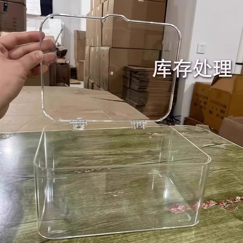 翻盖式桌面收纳盒透明亚克力防尘整理盒卧室宿舍办公室带盖杂物筐