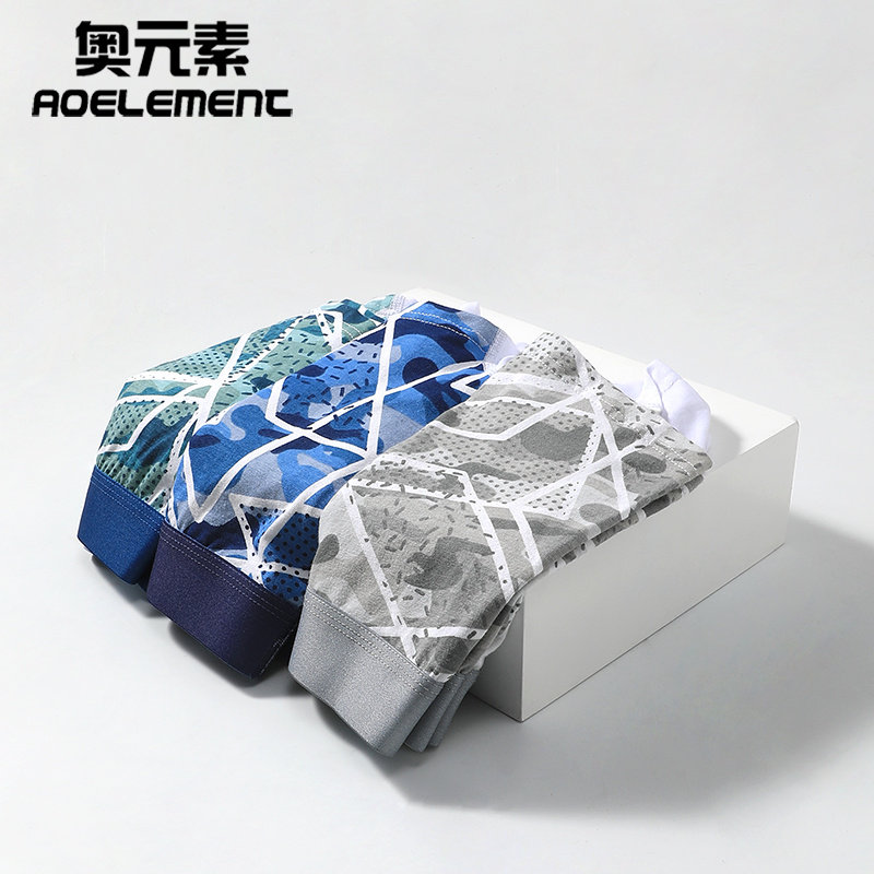 男士内裤男纯棉平角裤青年潮流个性男生舒适透气四角短裤头底裤衩