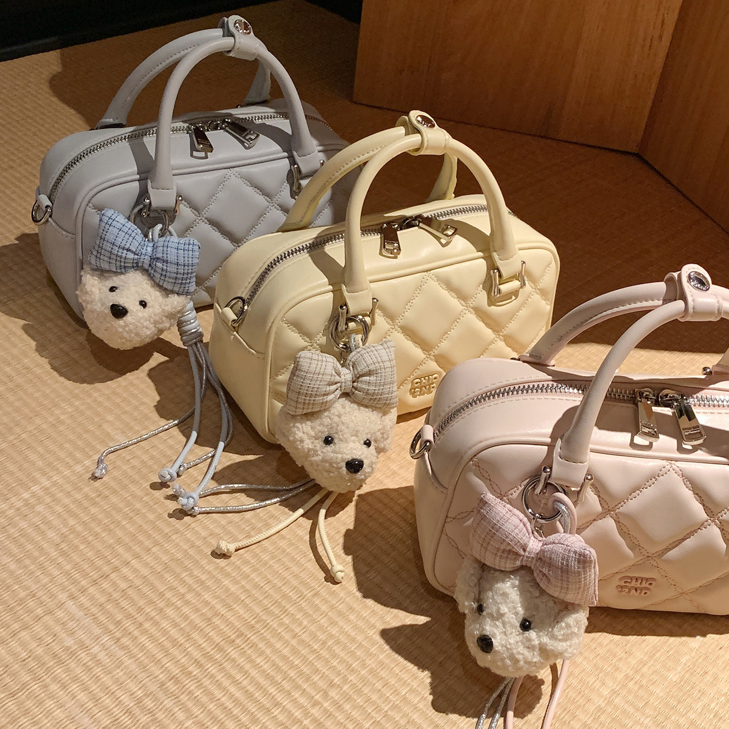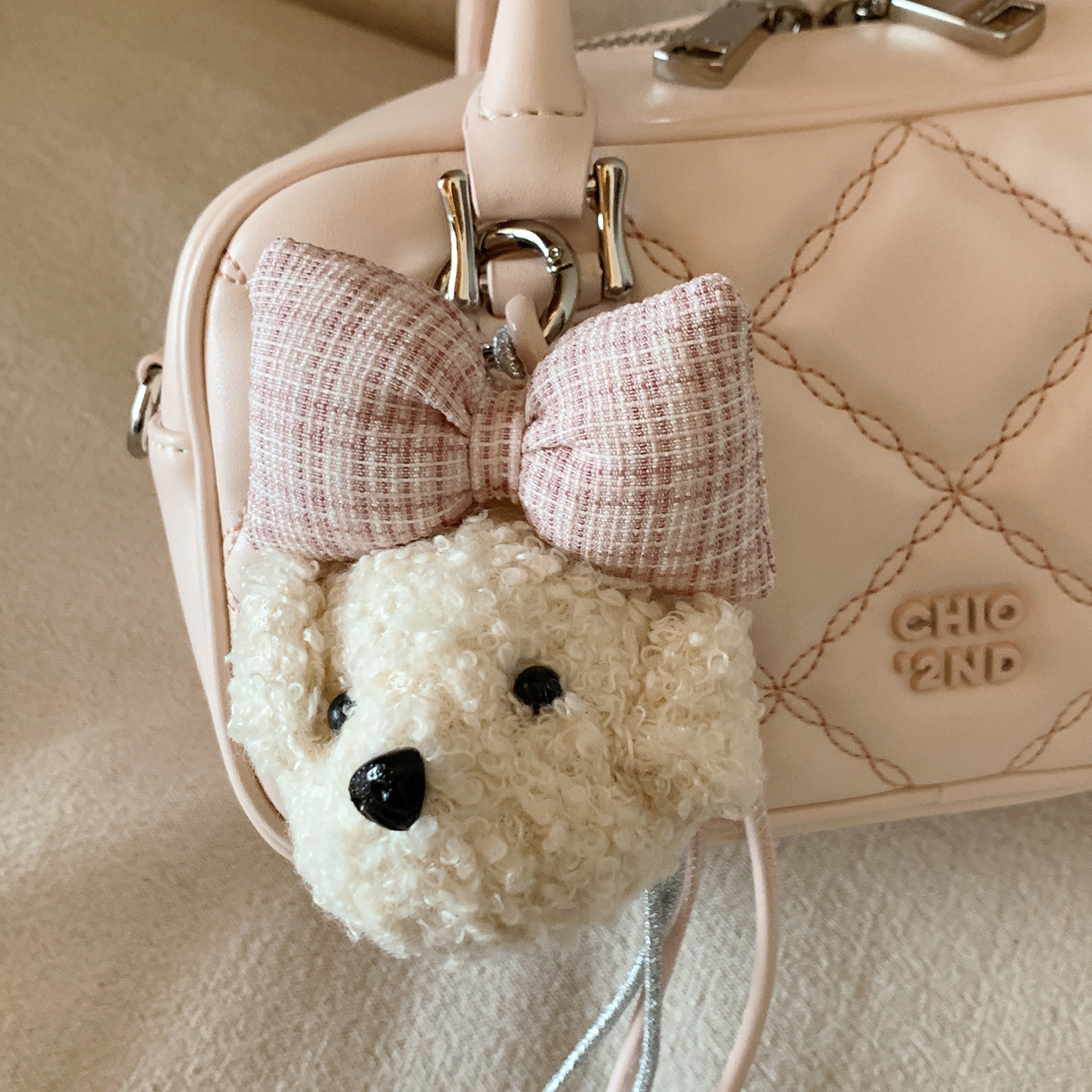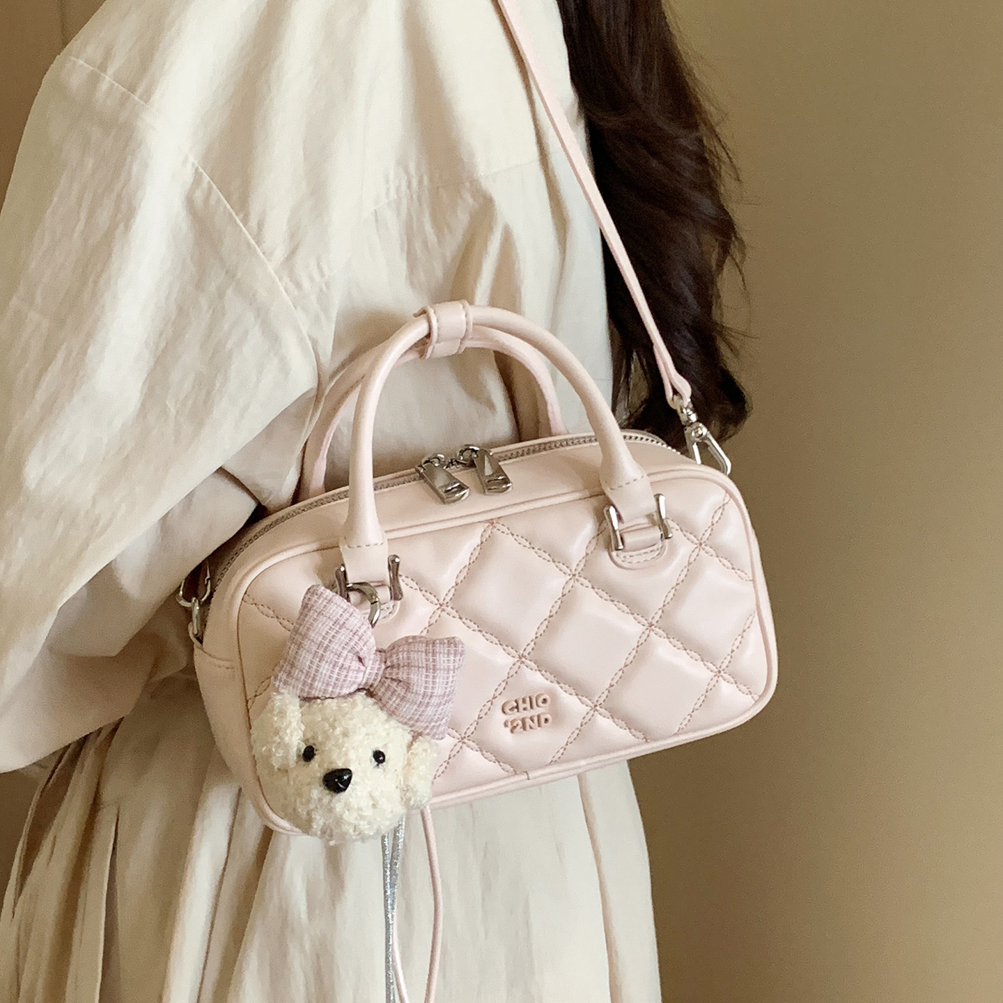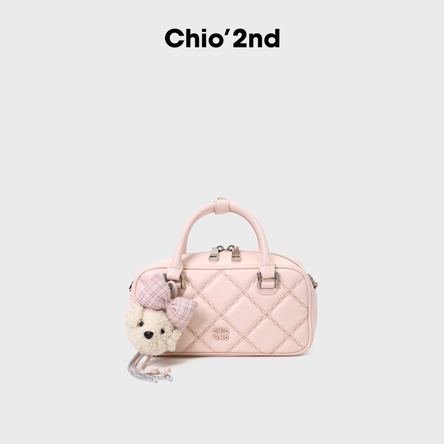 南风Chio2nd 软fufu樱花粉菱格手提包2026新款春时尚斜挎小包包女