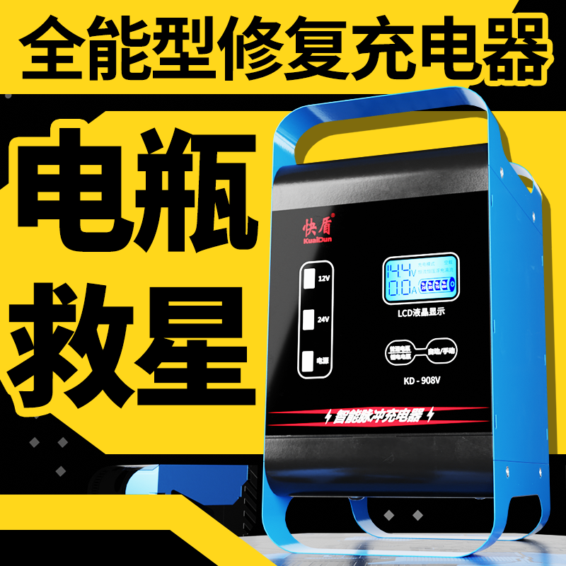 纯铜汽车电瓶充电器12v24v大功率通用全自动智能修复蓄电池充电机