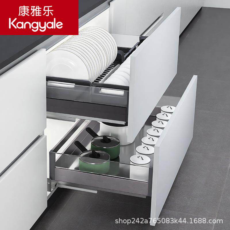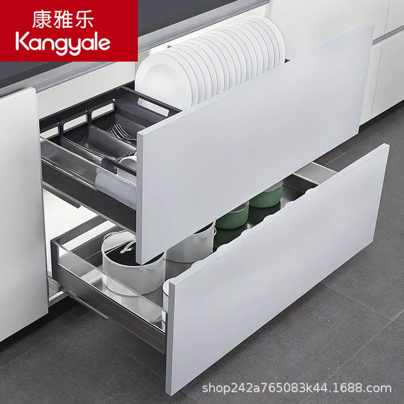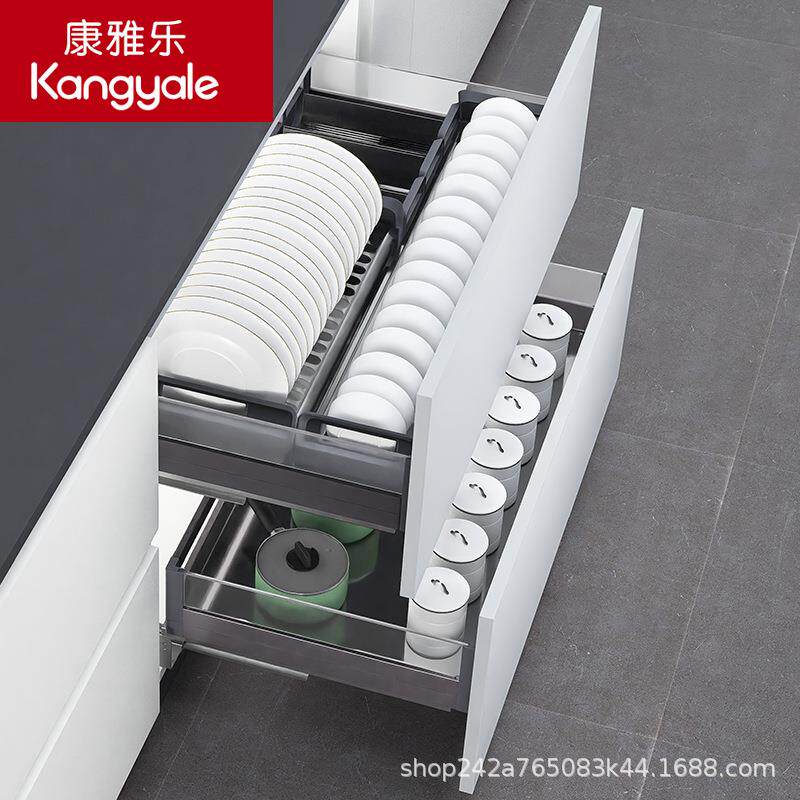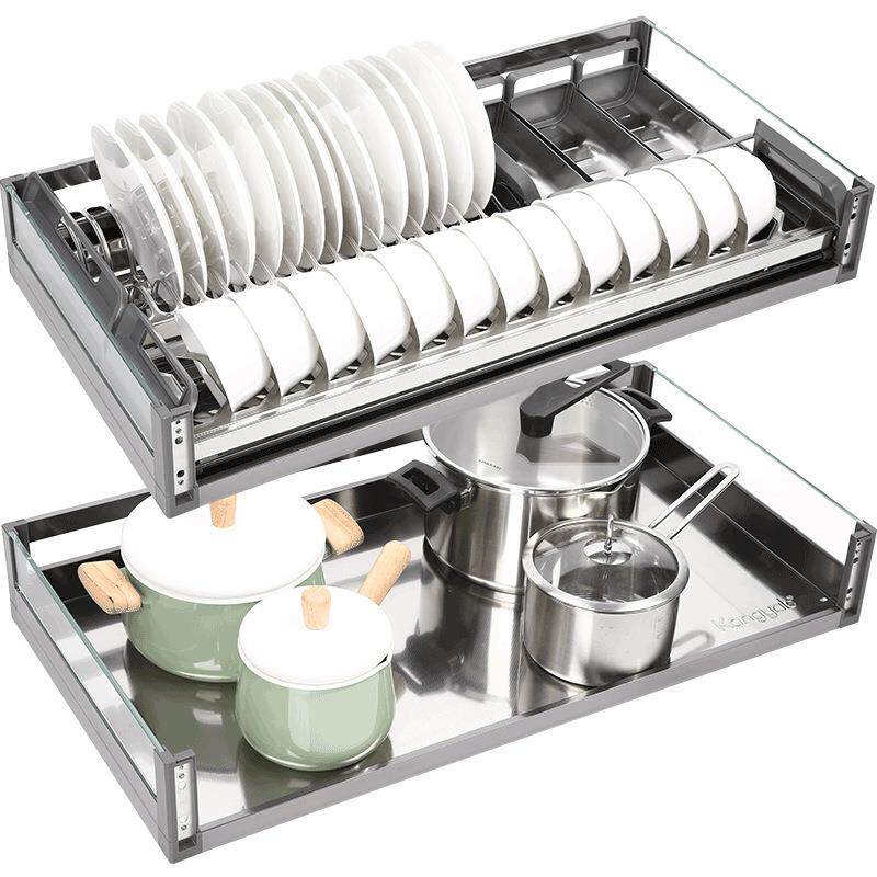 康雅乐 钢化玻璃拉篮厨房橱柜铝合金双层调味拉篮碗碟抽屉式碗篮