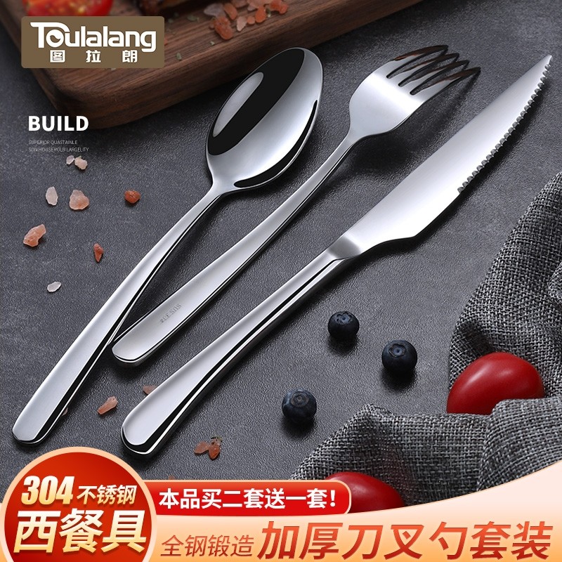 304不锈钢牛排刀叉勺西餐餐具三件套装欧式家用刀叉二件套