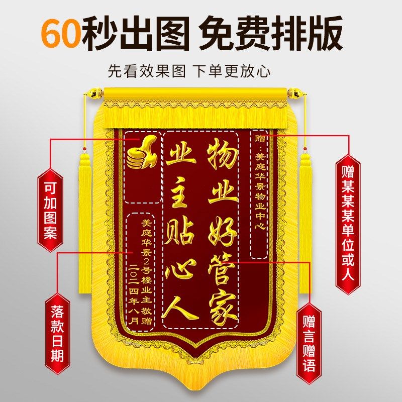 锦旗定制a感谢物业管家定做送物业社区中介管家定制感谢服务旌旗