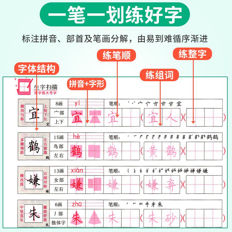 一年级练字字帖小学生语文同步人教版教材书梦家书写导航识字表硬笔描红练字本二三四五六年级上下册一类字二类字生字词语每日一练