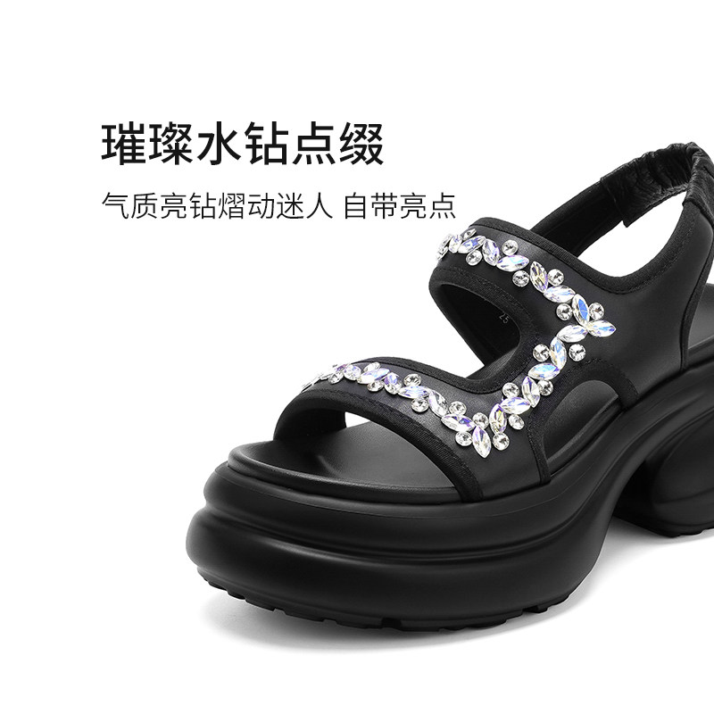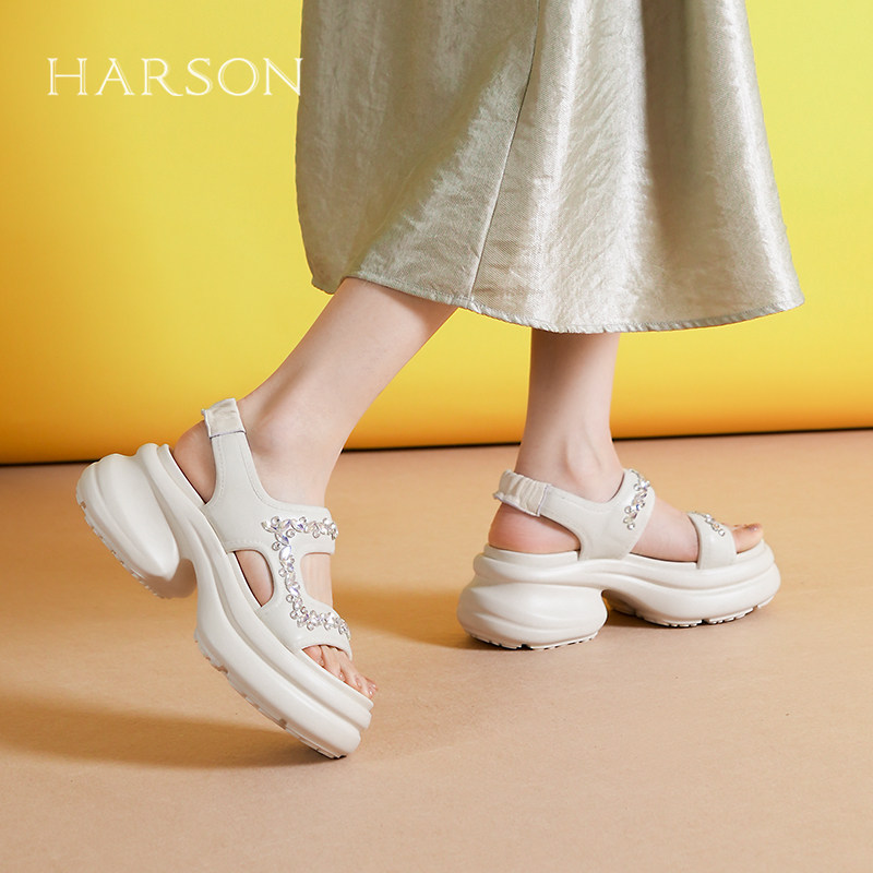 哈森仙女风厚底凉拖鞋女夏季新款水钻沙滩鞋休闲凉鞋HM258406