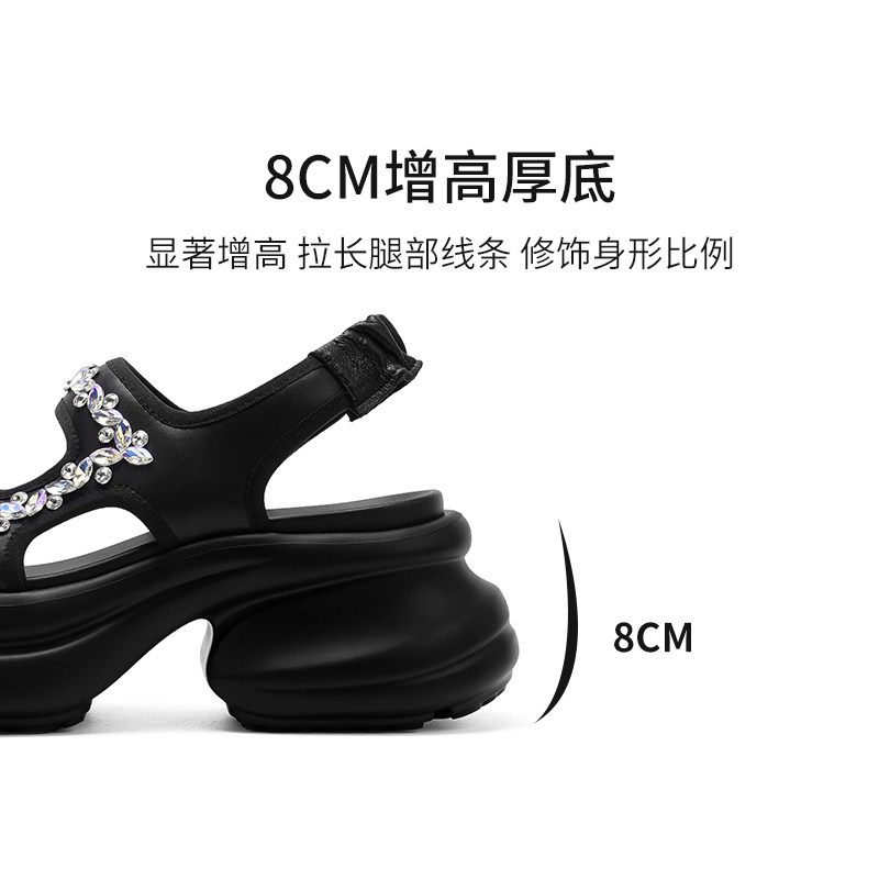 星期六厚底增高运动凉鞋女款新款夏季小香风魔术贴亮片沙滩鞋