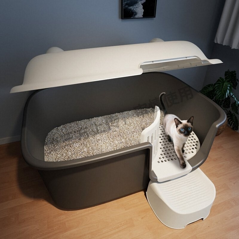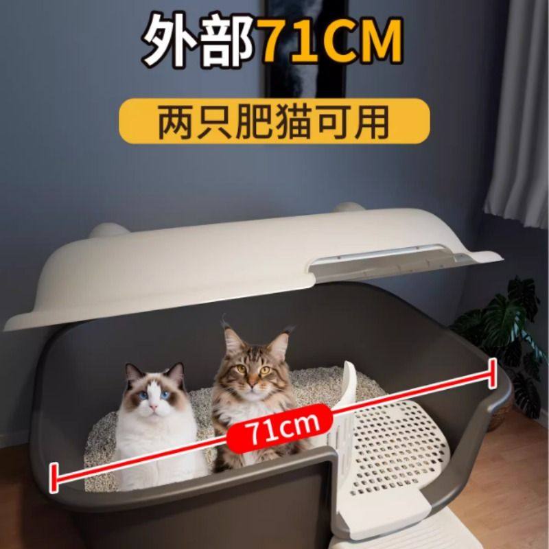 70cm超大号缅因猫砂盆走廊式防外溅厕所特大号布偶猫屎盆封闭式