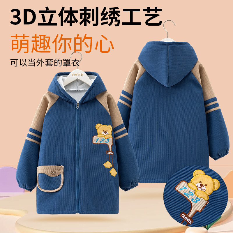 儿童罩衣防脏秋冬长袖宝宝吃饭护衣围兜幼儿园反穿衣防水罩褂围裙
