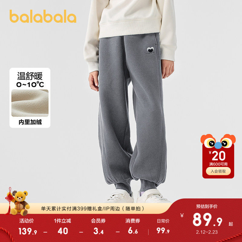 巴拉巴拉童装女童裤子冬装加绒长裤保暖儿童运动舒适束脚时尚百搭