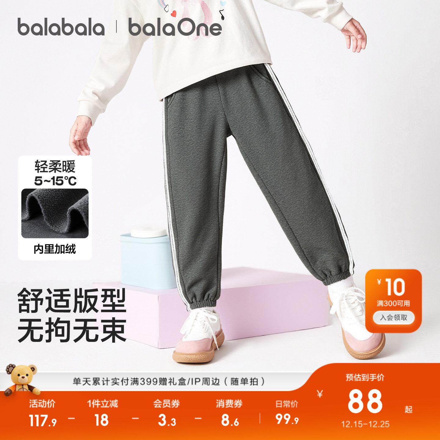 巴拉巴拉童装儿童加绒裤子女童2025冬装新款保暖束脚加厚运动长裤