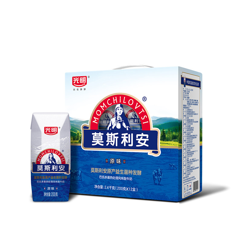 自营光明莫斯利安原味酸奶200g*12盒/礼盒装营养早餐学生酸牛奶