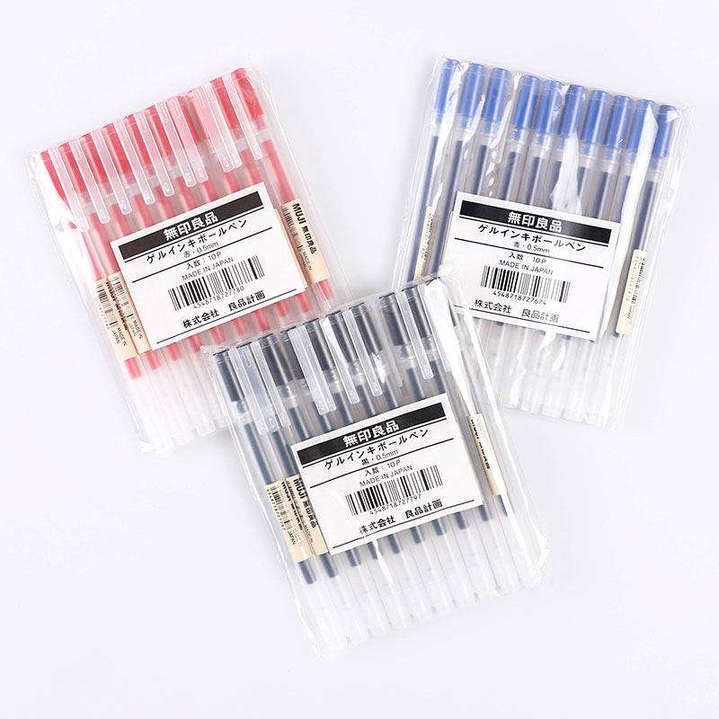 正品10支装MUJI无印良品文具笔凝胶墨中性水笔0.38/0.5mm笔芯学生