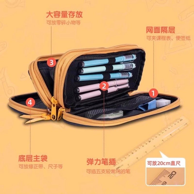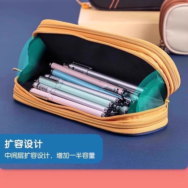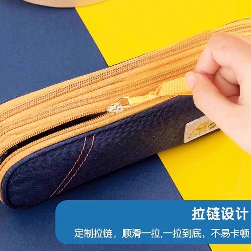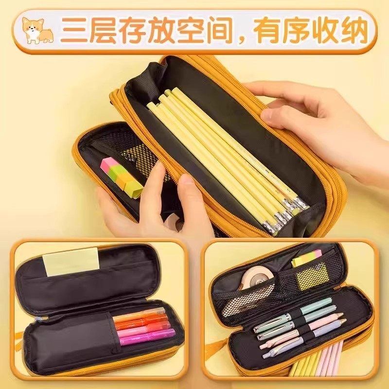 得力柴犬风格大容量笔袋加厚文具盒牛津布拉链铅笔盒高颜值流行简约高中初中多层文具收纳袋2025年新款