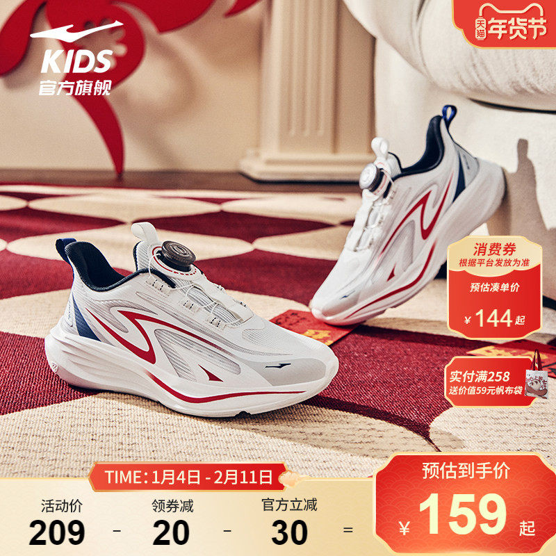 川流2|鸿星尔克童鞋男童红色秋冬运动鞋儿童旋钮新年鞋大童休闲鞋