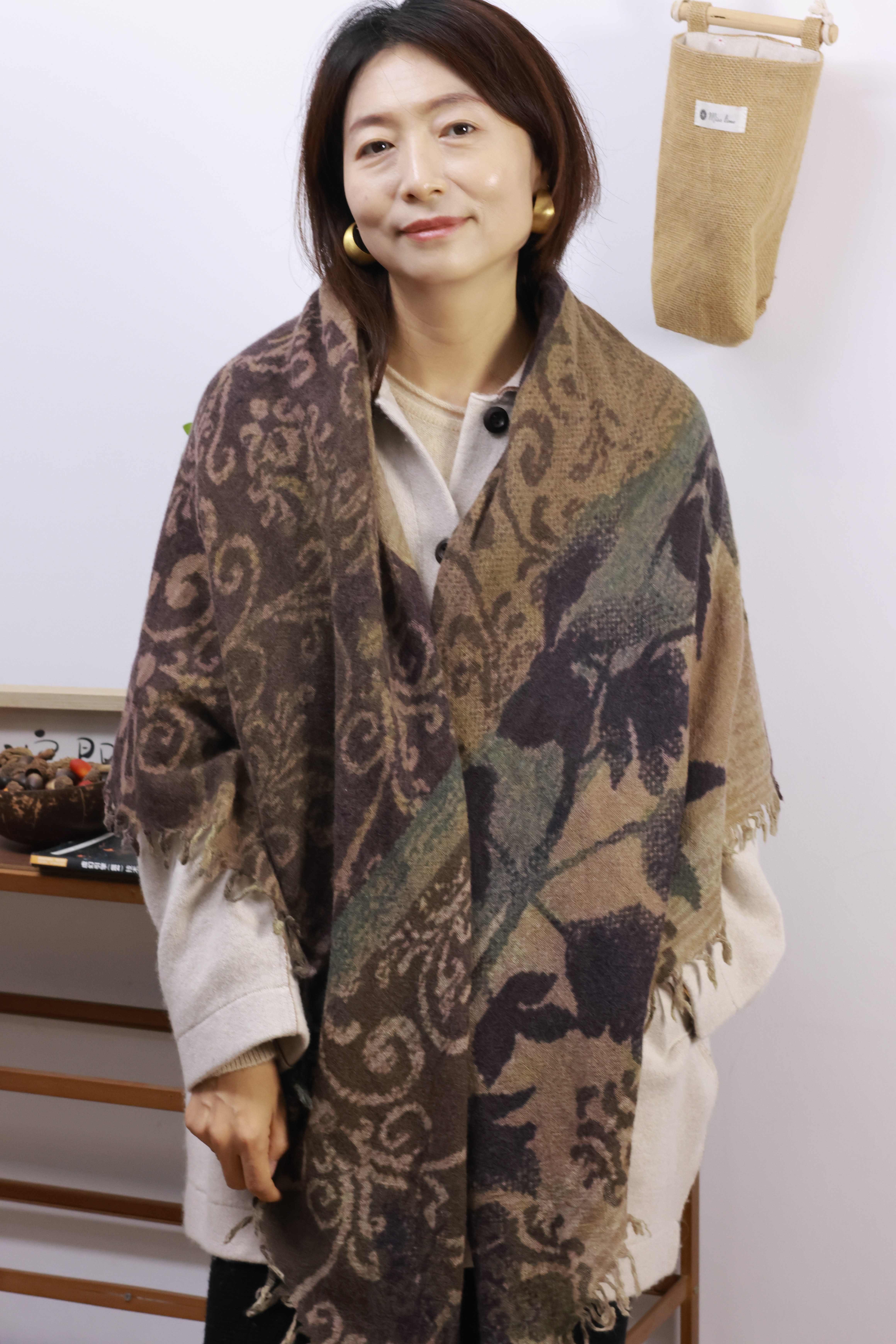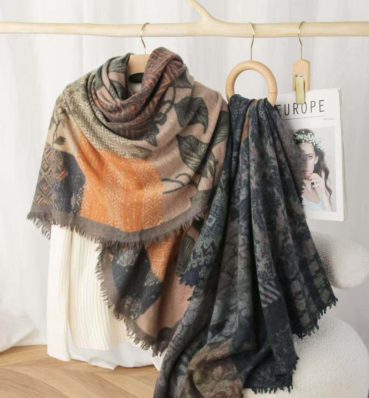 【LU】 100%水煮羊毛方巾印花大尺寸围巾披肩 多用途