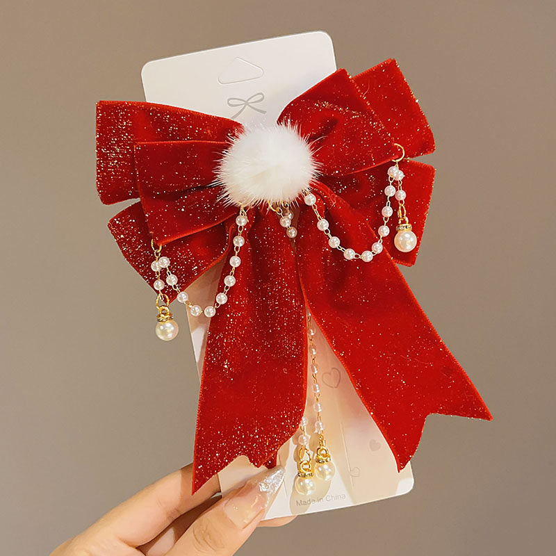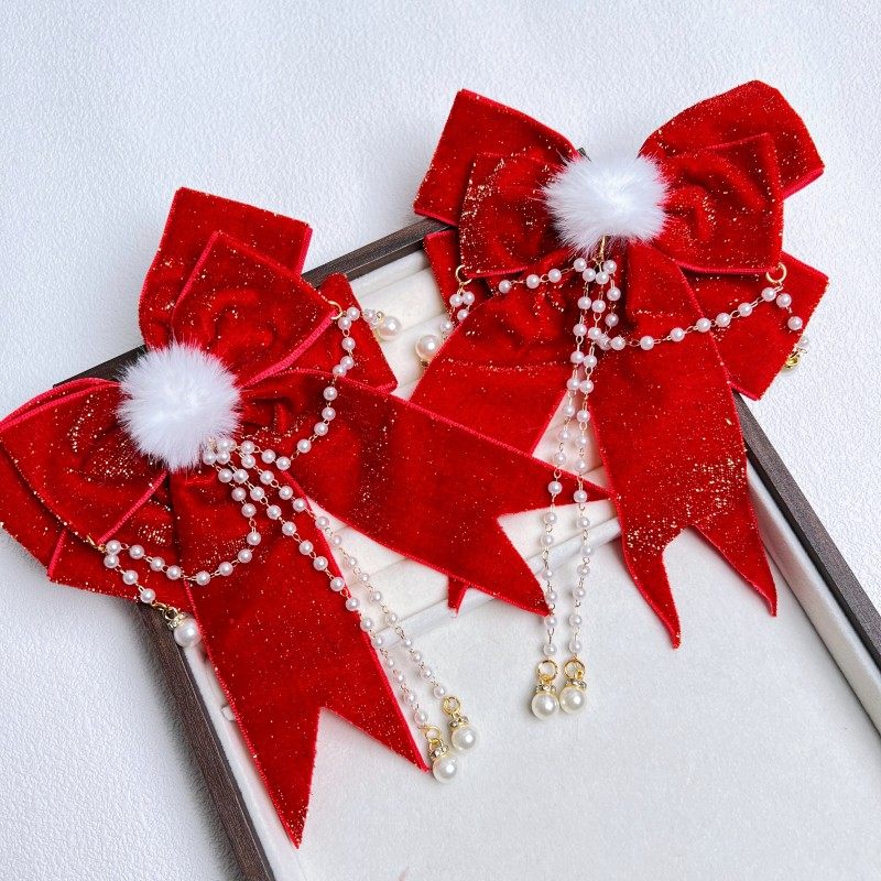 儿童新年发饰中国风大红色喜庆大蝴蝶结后压发夹女童宝宝过年头饰
