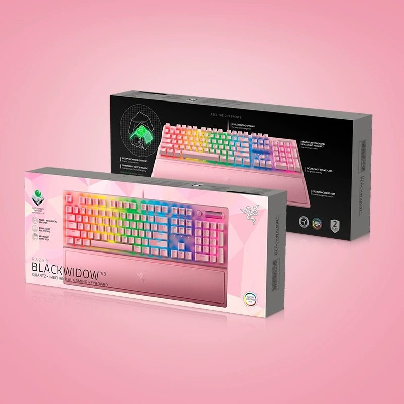 Razer雷蛇黑寡妇蜘蛛V3粉晶粉色游戏电竞RGB背光USB有线机械键盘
