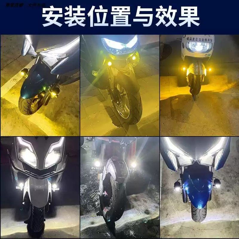 摩托车激光射灯强光款电动车led射灯黄白双光远近一体爆闪灯改装