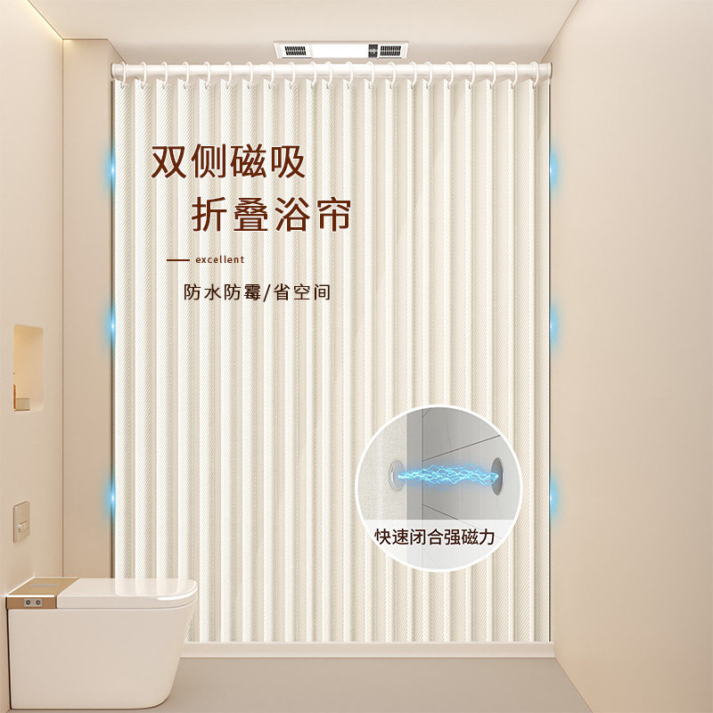 浴室高档折叠浴帘免打孔卫生间防水防霉隔断洗澡淋浴遮挡窗帘门帘