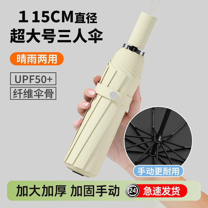 手动折叠防暴雨伞加大加厚加固超大号三双人晴雨两用防晒遮阳伞