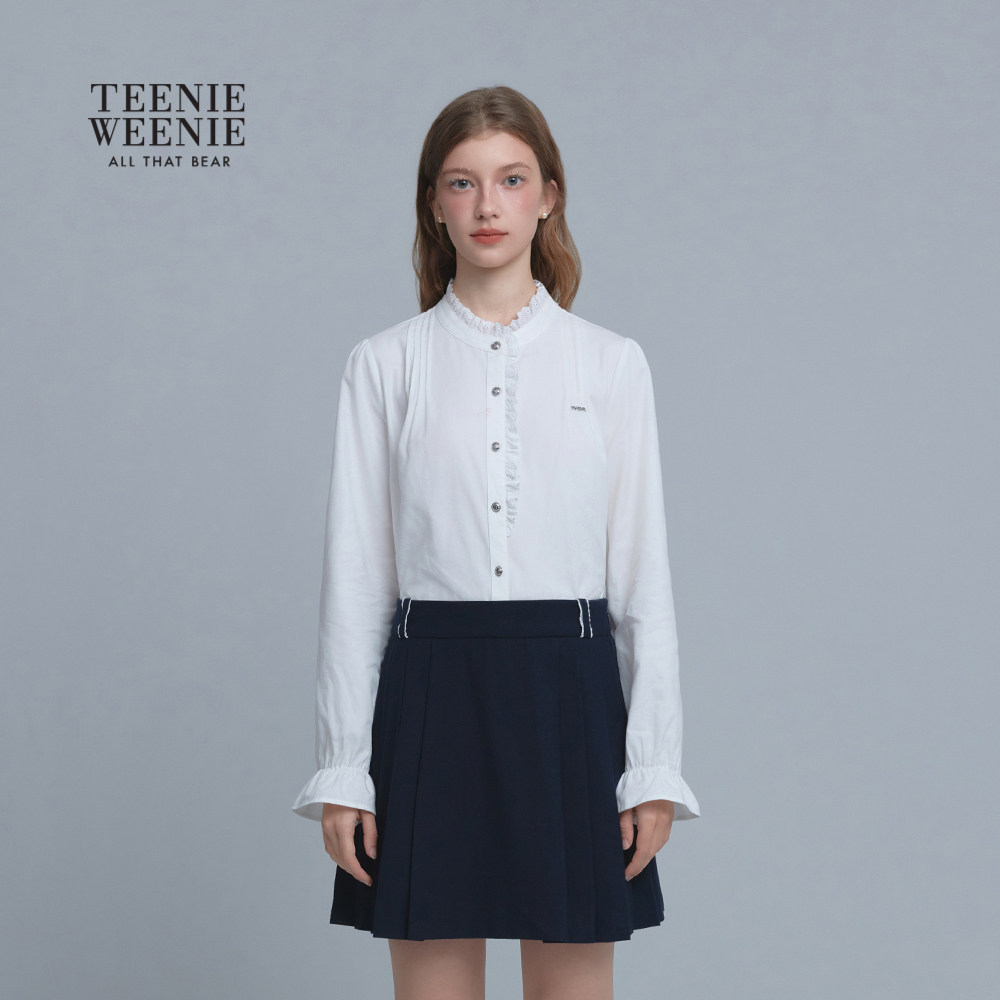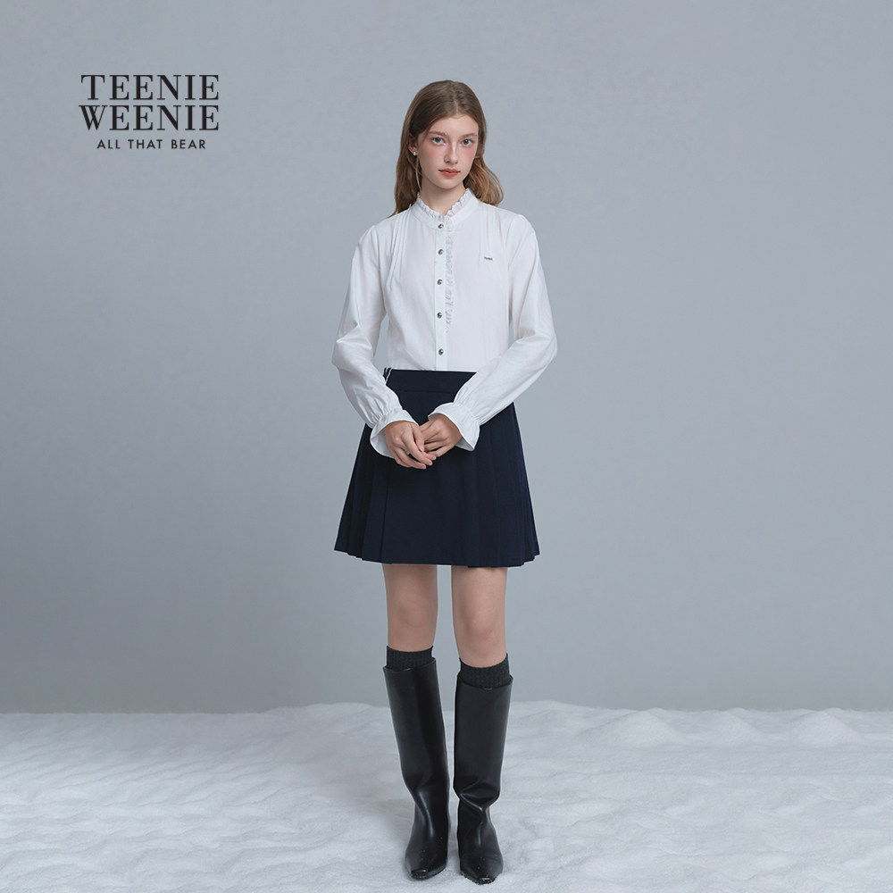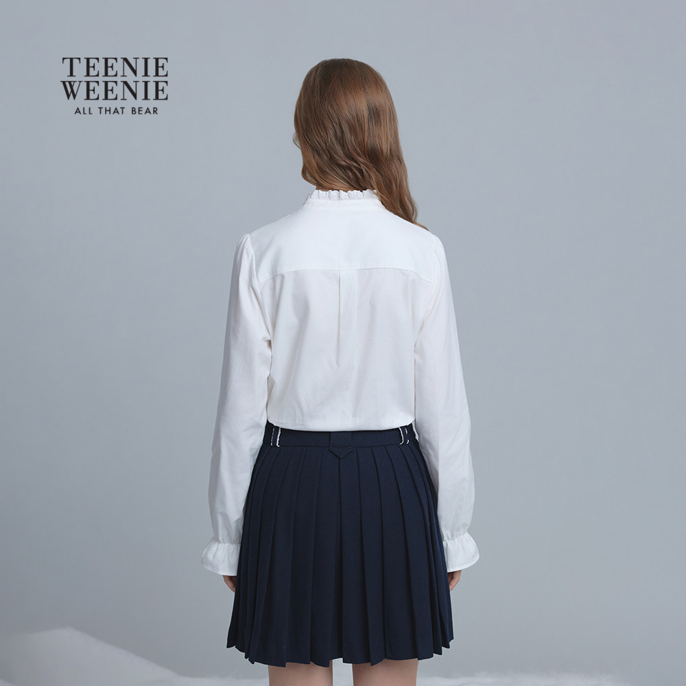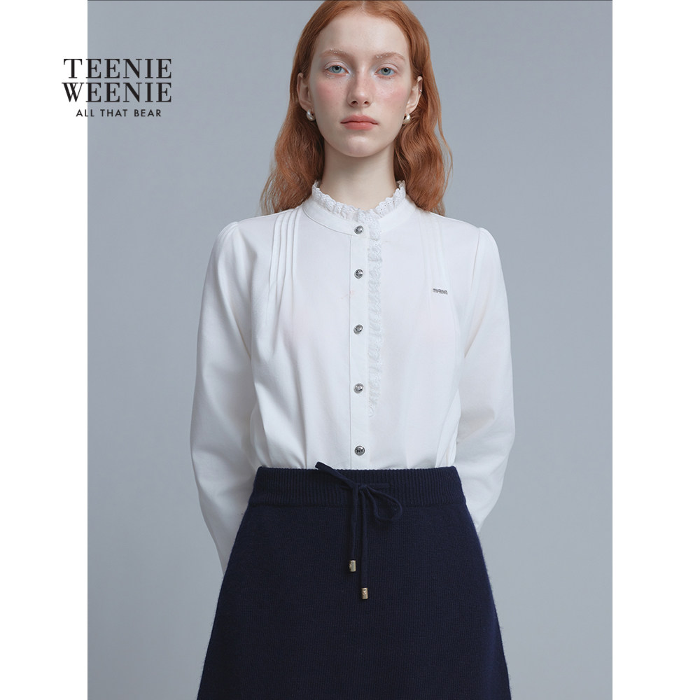 TeenieWeenie小熊女装衬衫25年冬新款简洁优雅蕾丝装饰高领雪纺衫