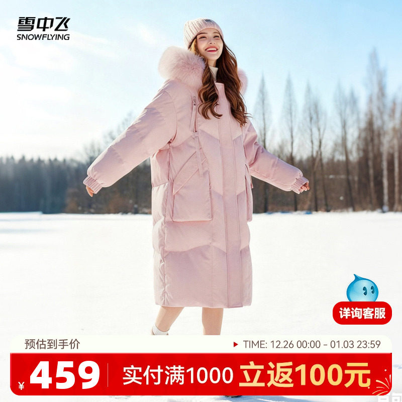 雪中飞2025秋冬女士时尚宽松狐狸毛领长款羽绒服韩版保暖抗寒百搭