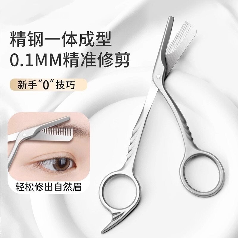 不夹毛灰色修眉剪眉毛美容修剪金属一体带梳不锈钢剪刀修剪神器