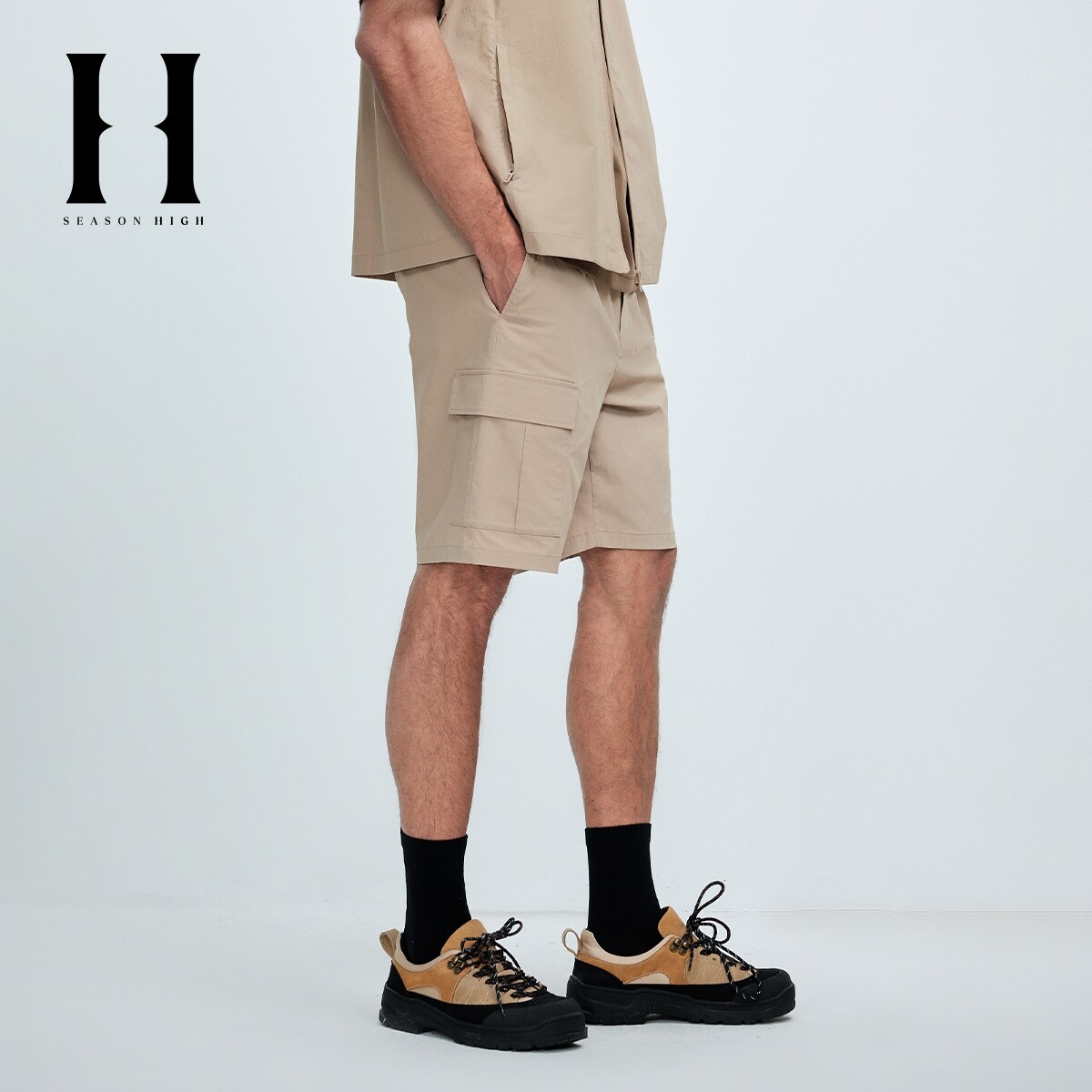SEASON HIGH男装夏季短裤宽松精致刺绣舒适时尚百搭简约纯色潮