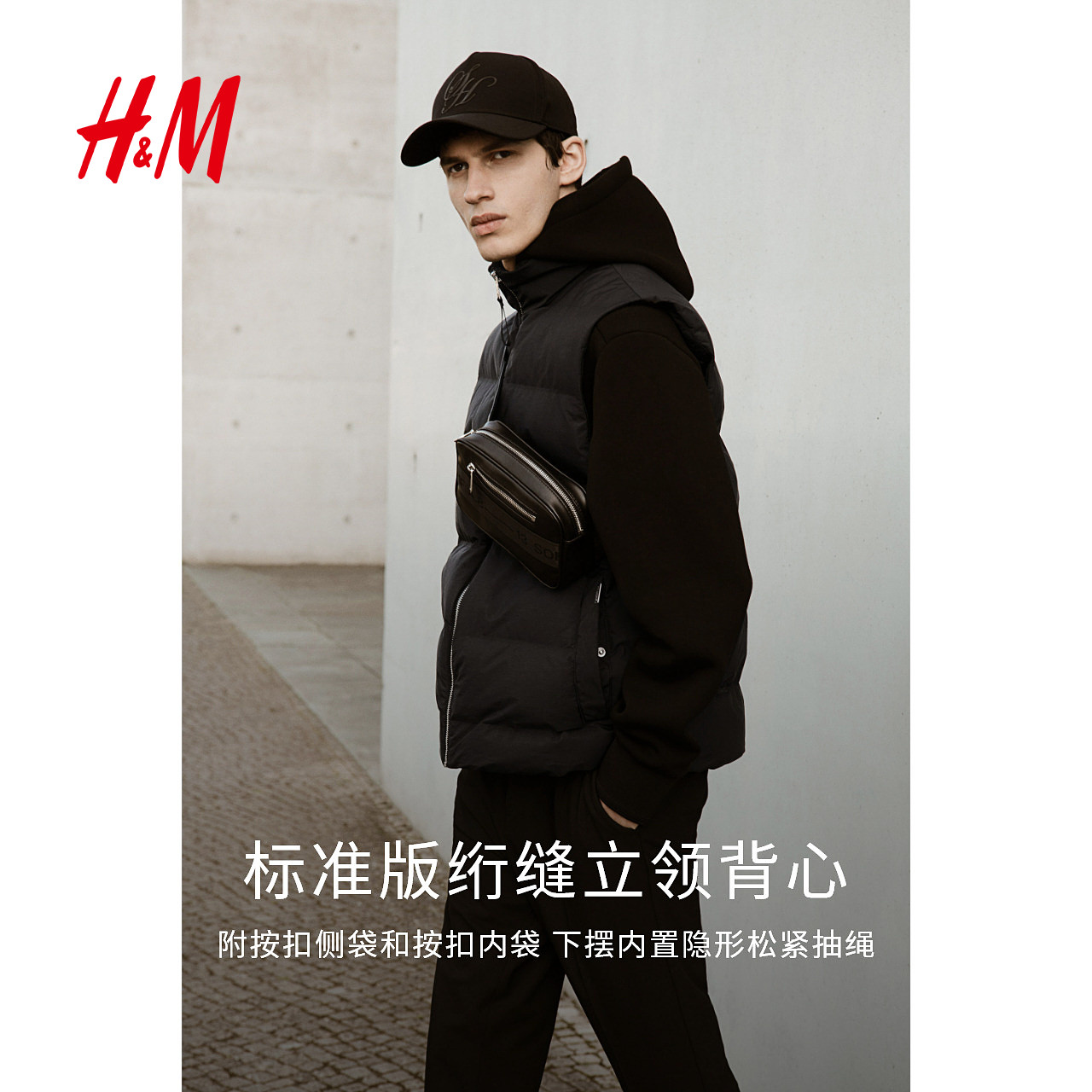 HM男装马甲冬季标准版型疏水棉外搭背心1227439