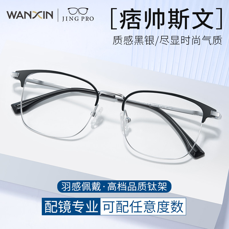 蔡司眼镜片变色时尚男款超轻纯钛眉线眼镜框专业网上配近视防蓝光