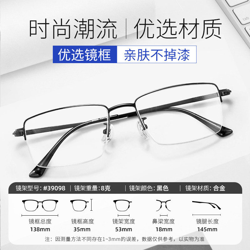 目戏近视眼镜可配蔡司度数可选防蓝光半框配眼镜框镜架男71009