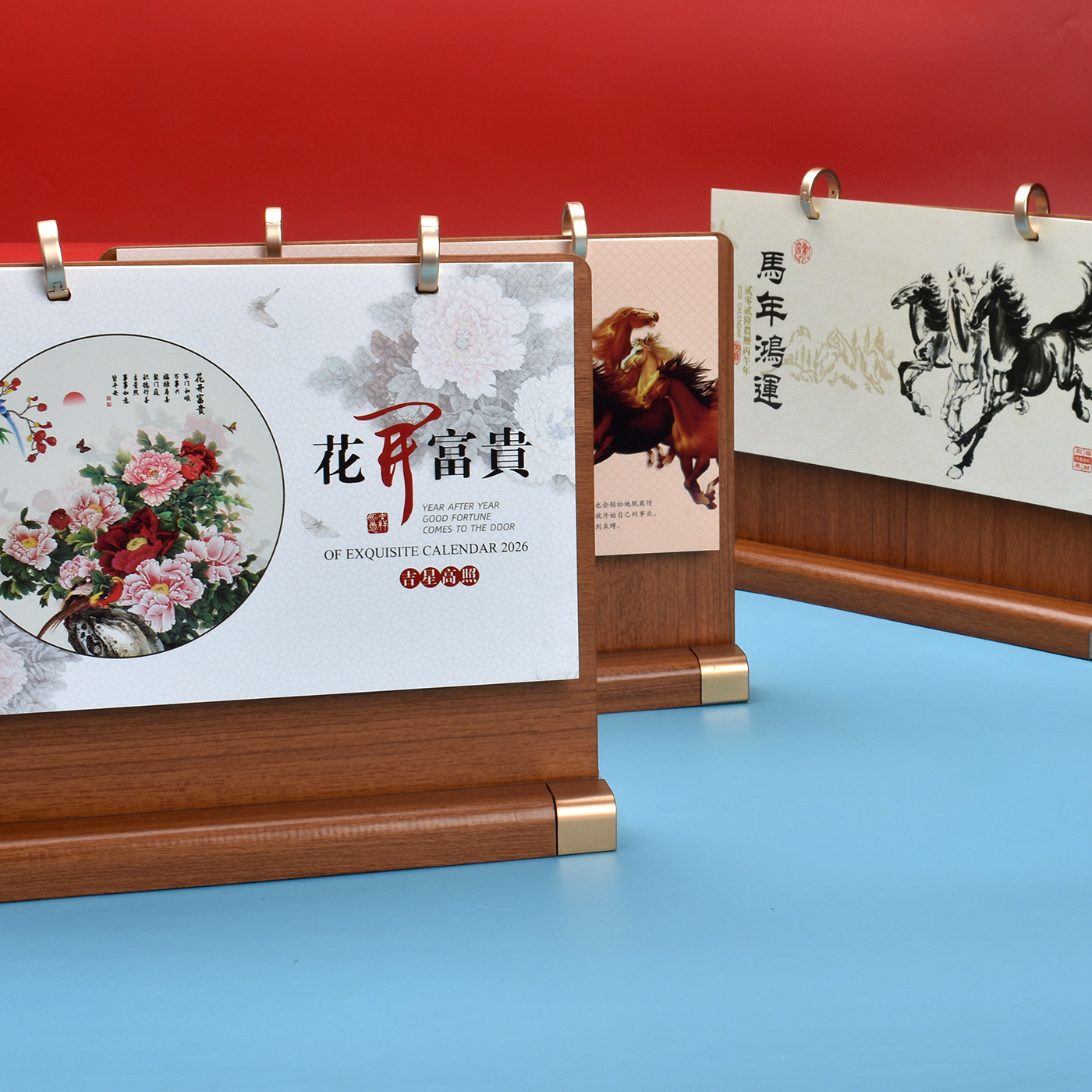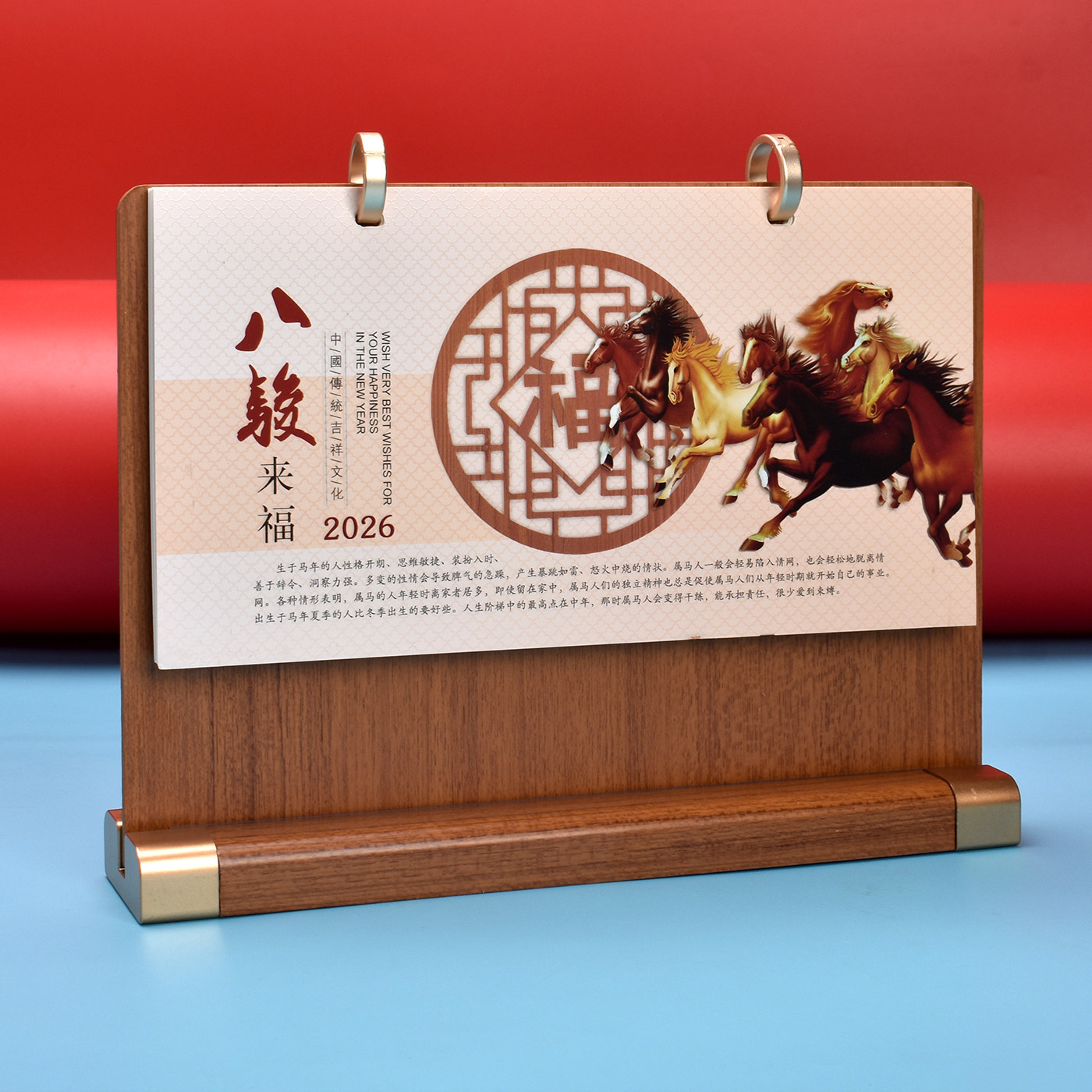 木质台历2026年创意简约桌面摆件公司定制logo商务办公计划马年新款工作打卡日历本ins风记事纸质三角台历本