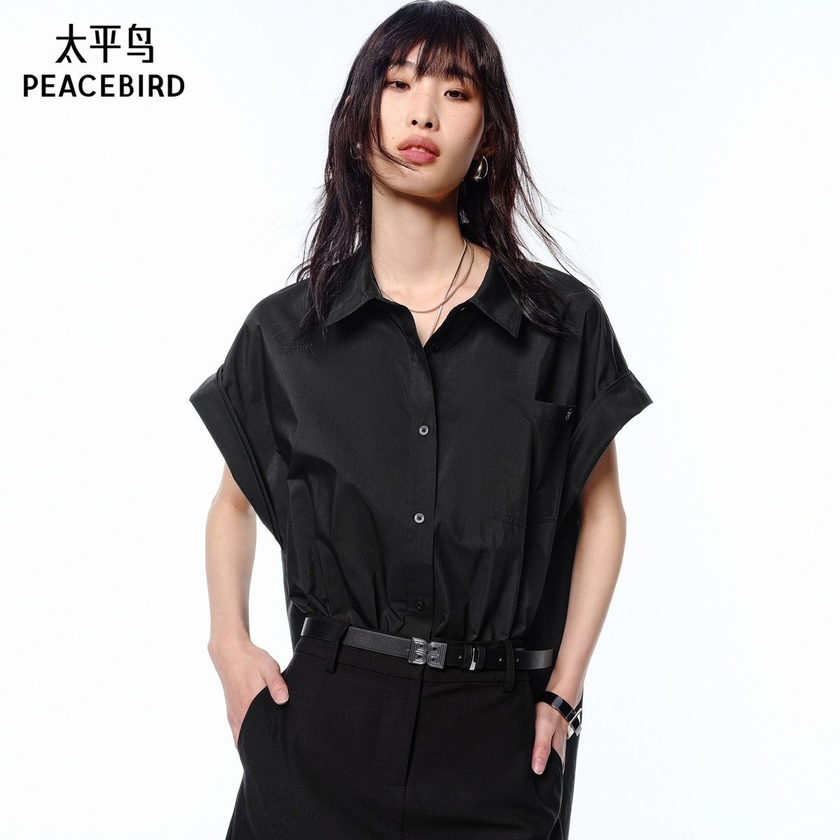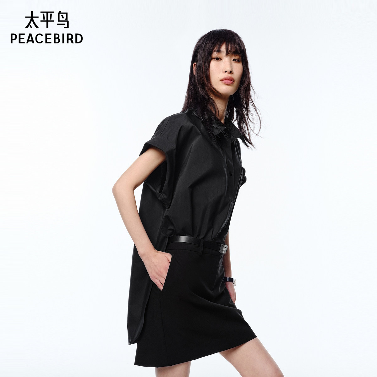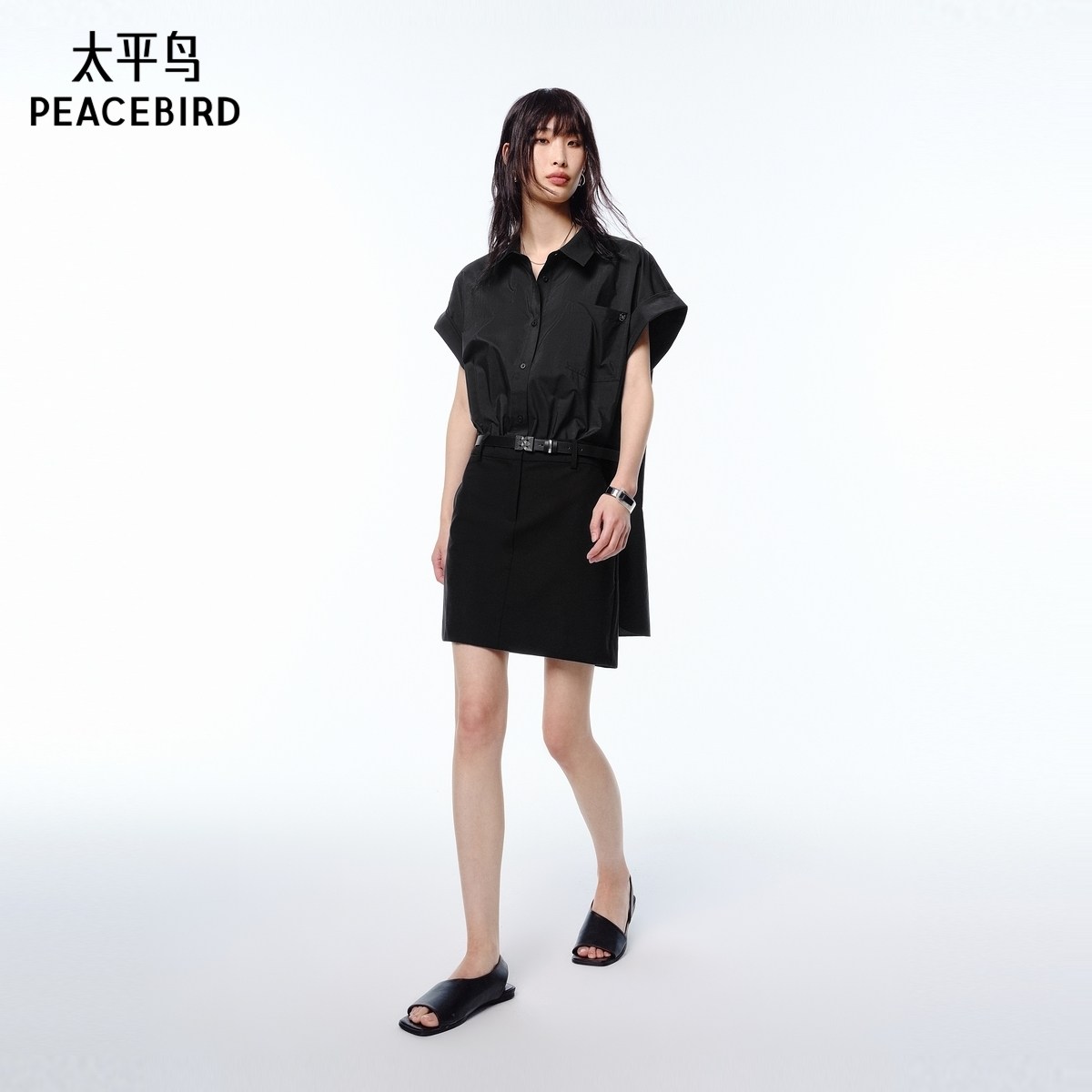 【商场同款】太平鸟工装风衬衫连衣裙2025夏新款短裙黑A3FAF2149