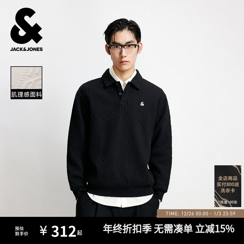 杰克琼斯男装秋季新款日常百搭肌理感提花针织宽松polo领卫衣