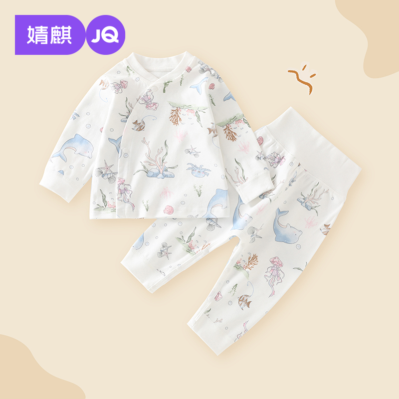 婧麒婴儿秋衣套装宝宝秋裤内衣男女童高腰护肚儿童保暖秋装睡衣