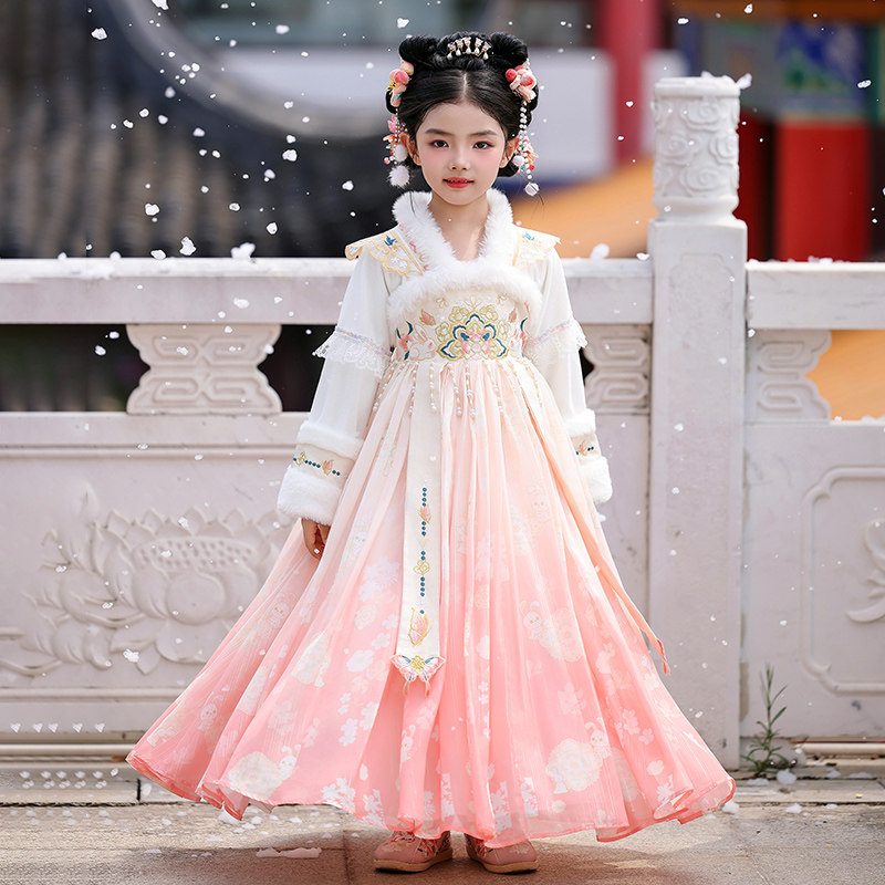 女童汉服秋冬季加绒中国风古风女孩唐装2025新款儿童公主裙子冬款