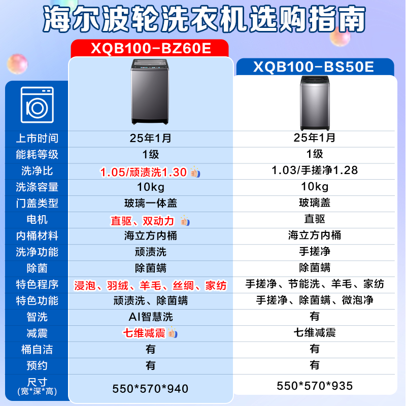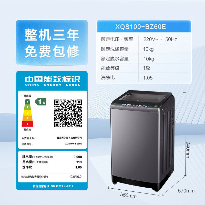 海尔洗衣机波轮10公斤双动力60E防缠绕电离除菌螨全自动家用70E