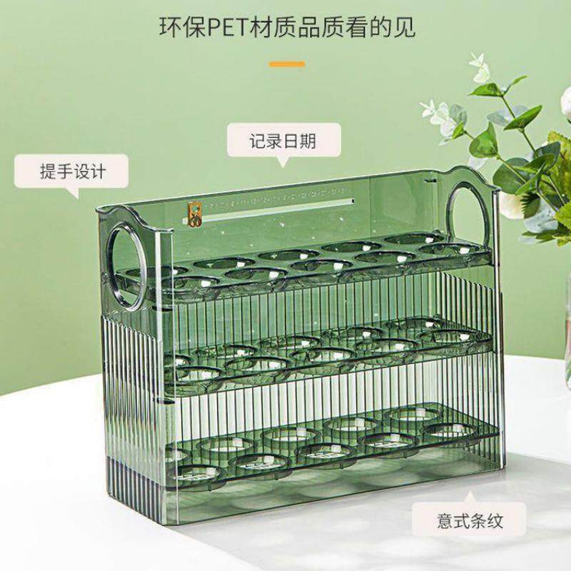 滚动鸡蛋收纳盒厨房多层斜口自动滚蛋器冰箱侧门鸡蛋托专用保鲜盒