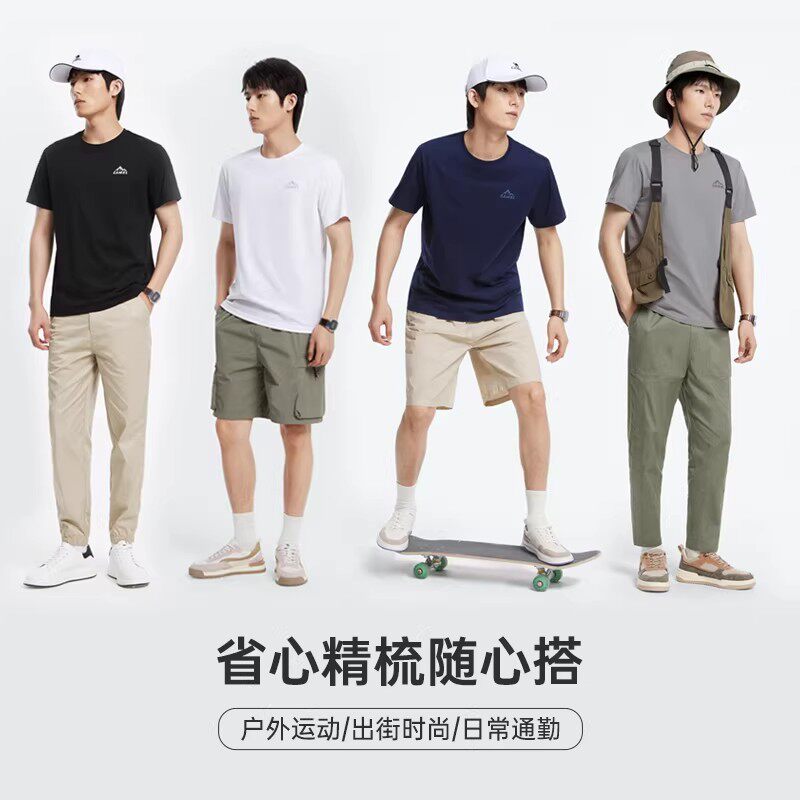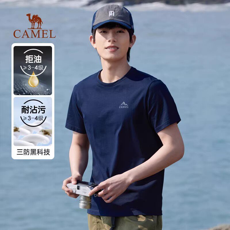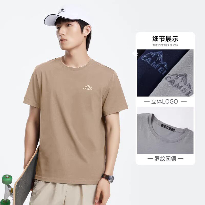 骆驼男装三防T恤男2026夏季美式圆领短袖纯棉纯色半袖体恤打底衫