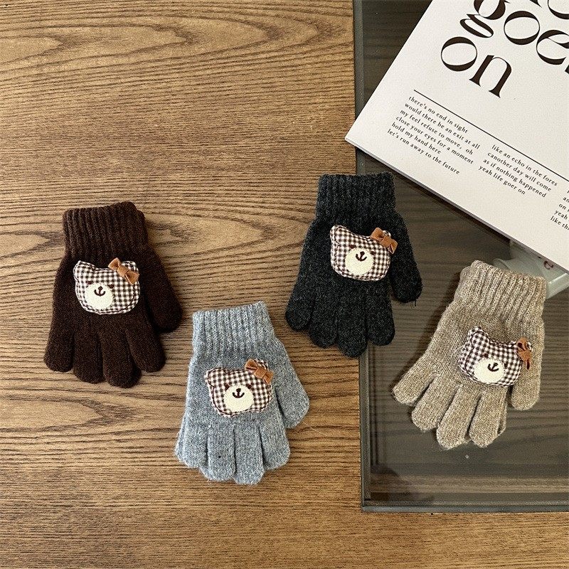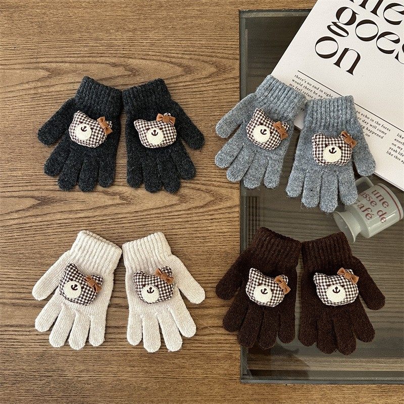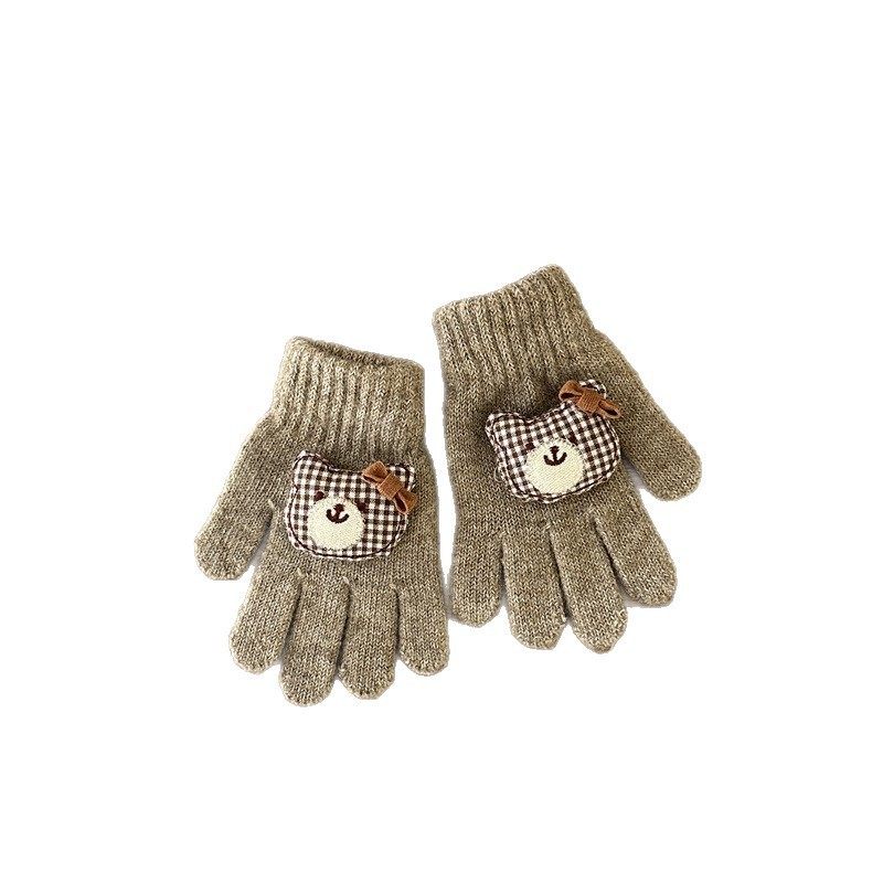 新款儿童手套冬季卡通可爱小熊保暖针织户外宝宝分指超萌手套
