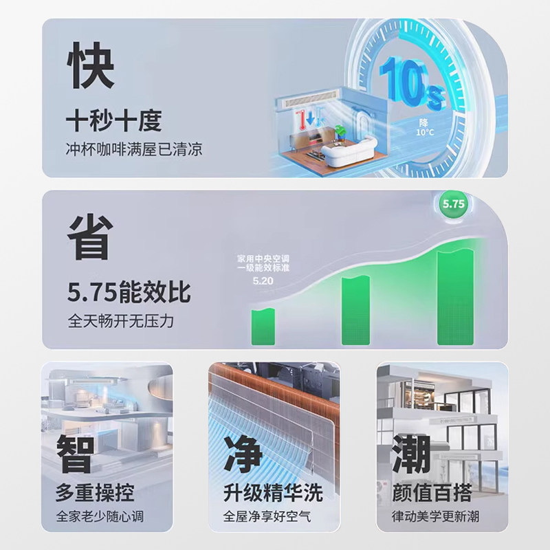 志高iCongo家用中央空调一拖四三二56匹7p直流变频冷暖一级风管机