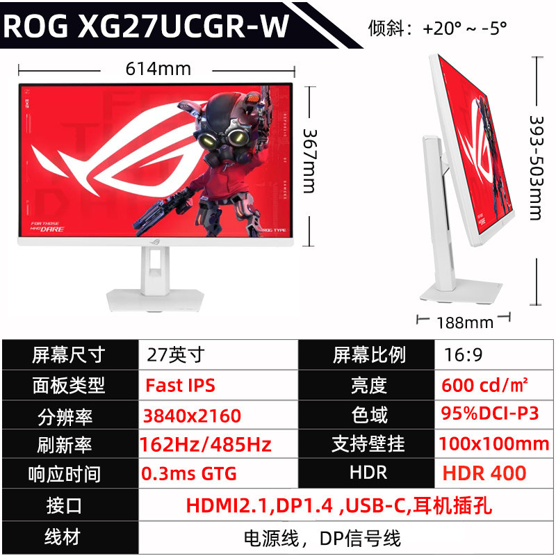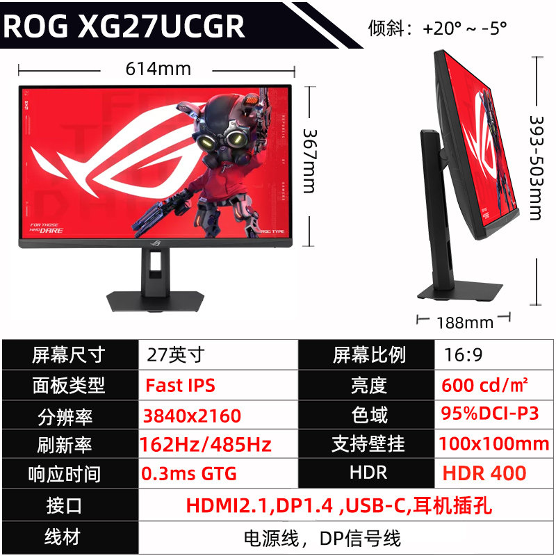 华硕ROG XG27UCGR绝神27二代显示器4K双模162Hz游戏电脑屏幕485Hz