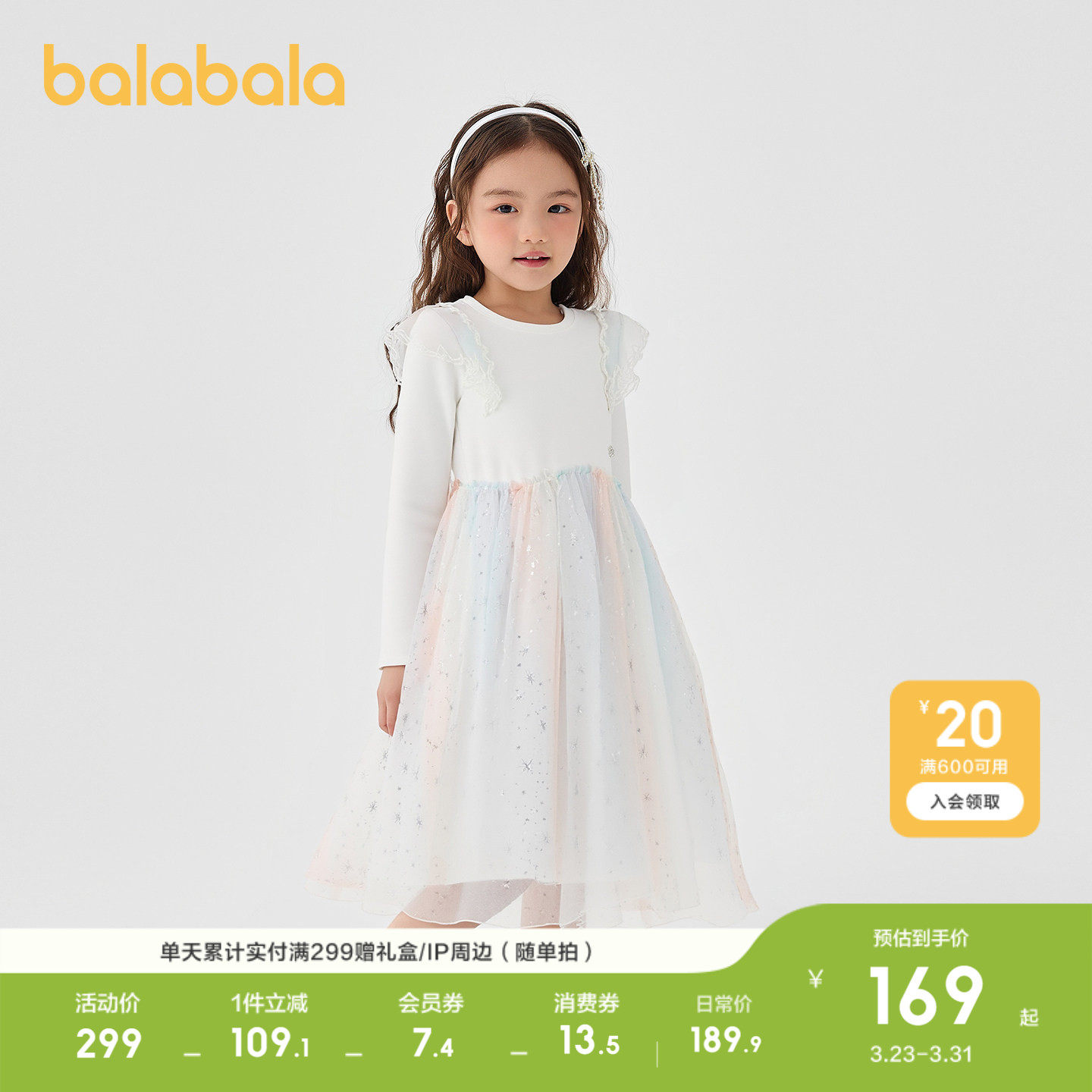 【balaOne】巴拉巴拉童装女童连衣裙2025新款春装网纱裙甜美洋气