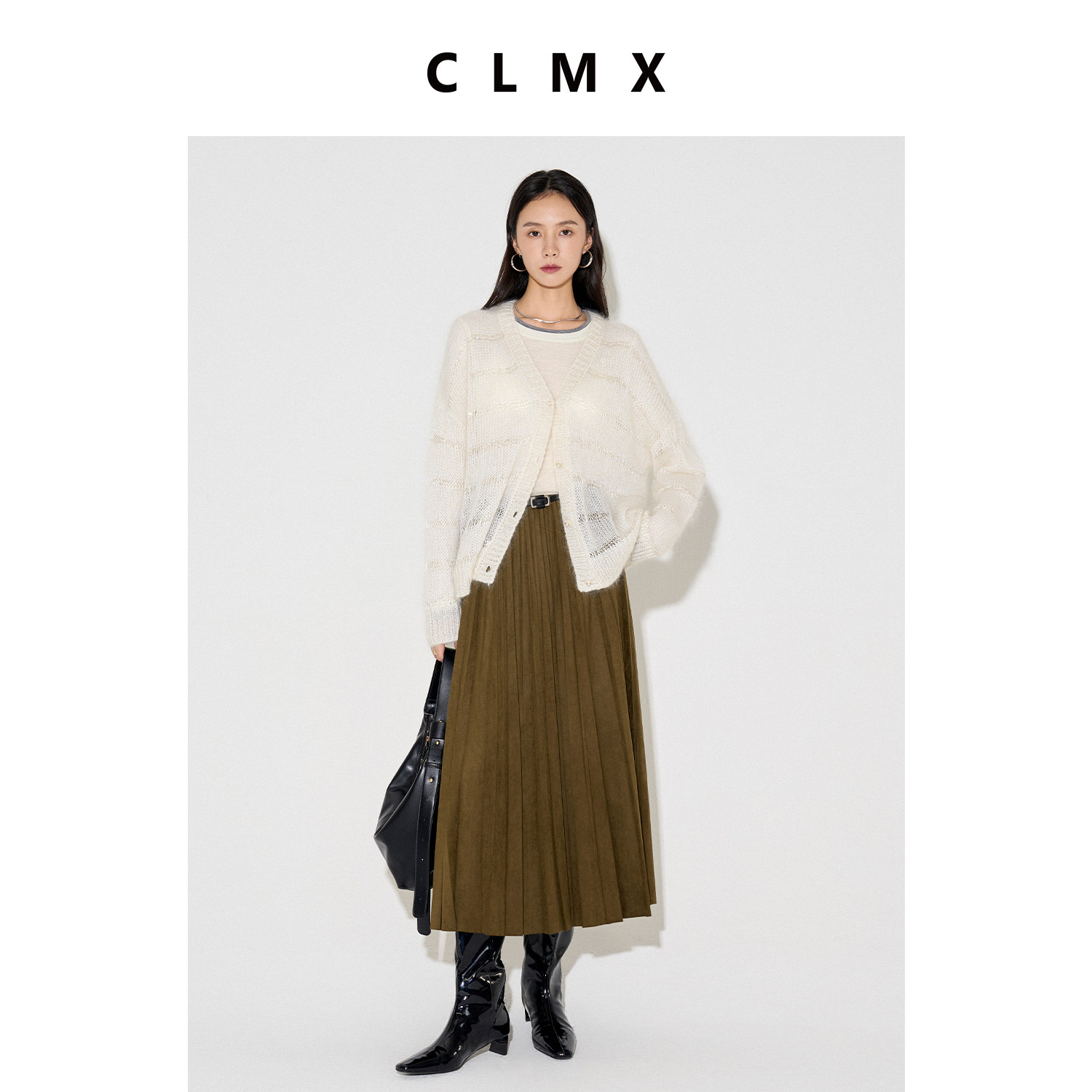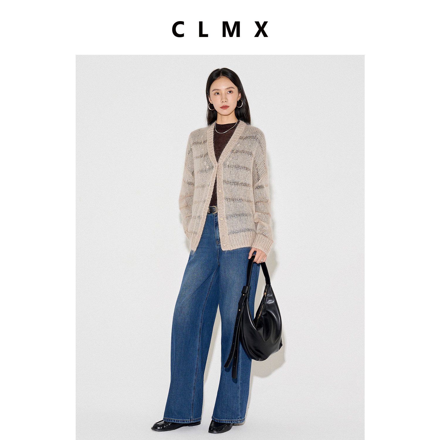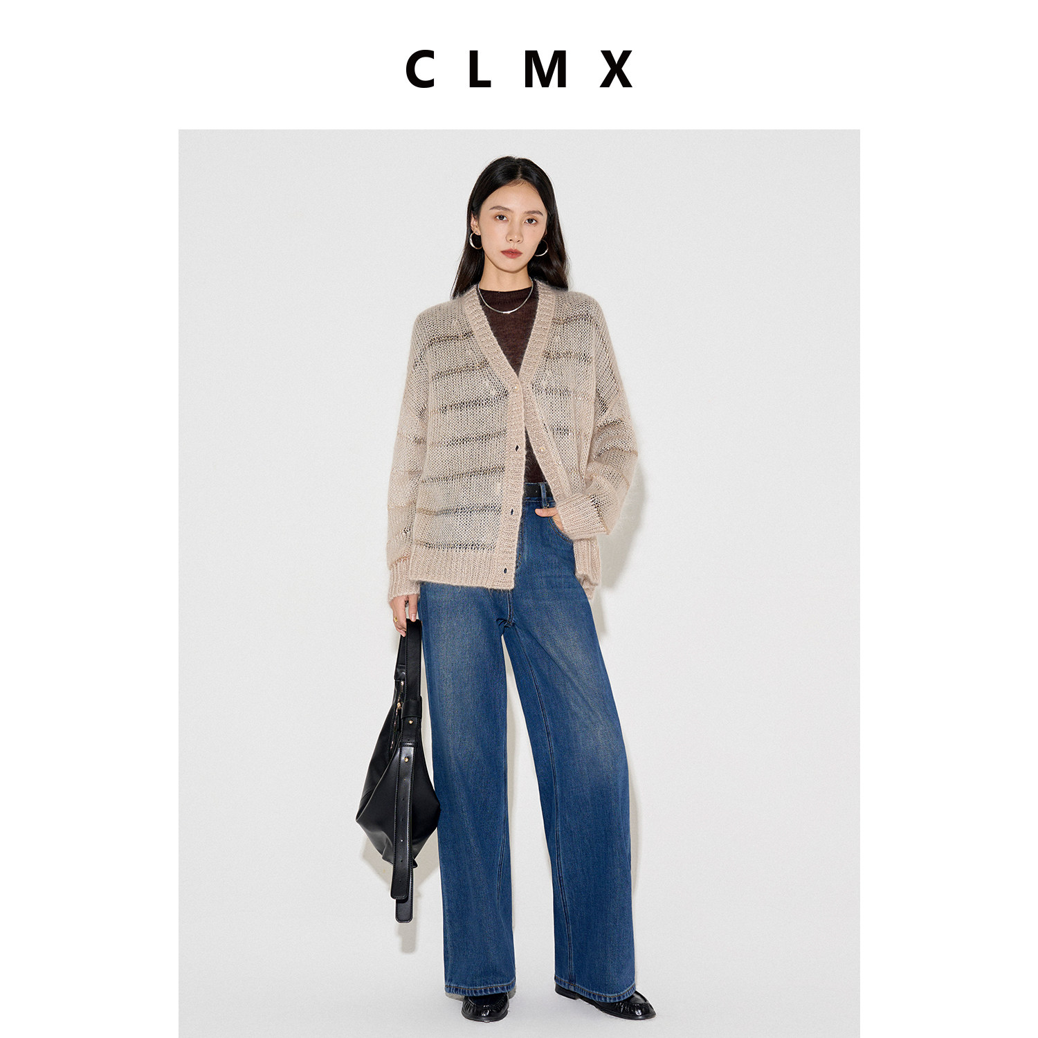 CLMX随性镂空粗针钻闪V领针织开衫8s粗支马海毛混纺秋冬休闲上衣