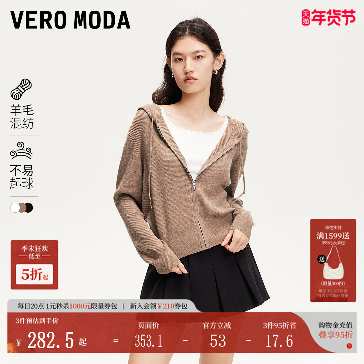 Vero Moda针织衫2025秋冬含羊毛连帽针织开衫外套雅丹上衣巴恩风