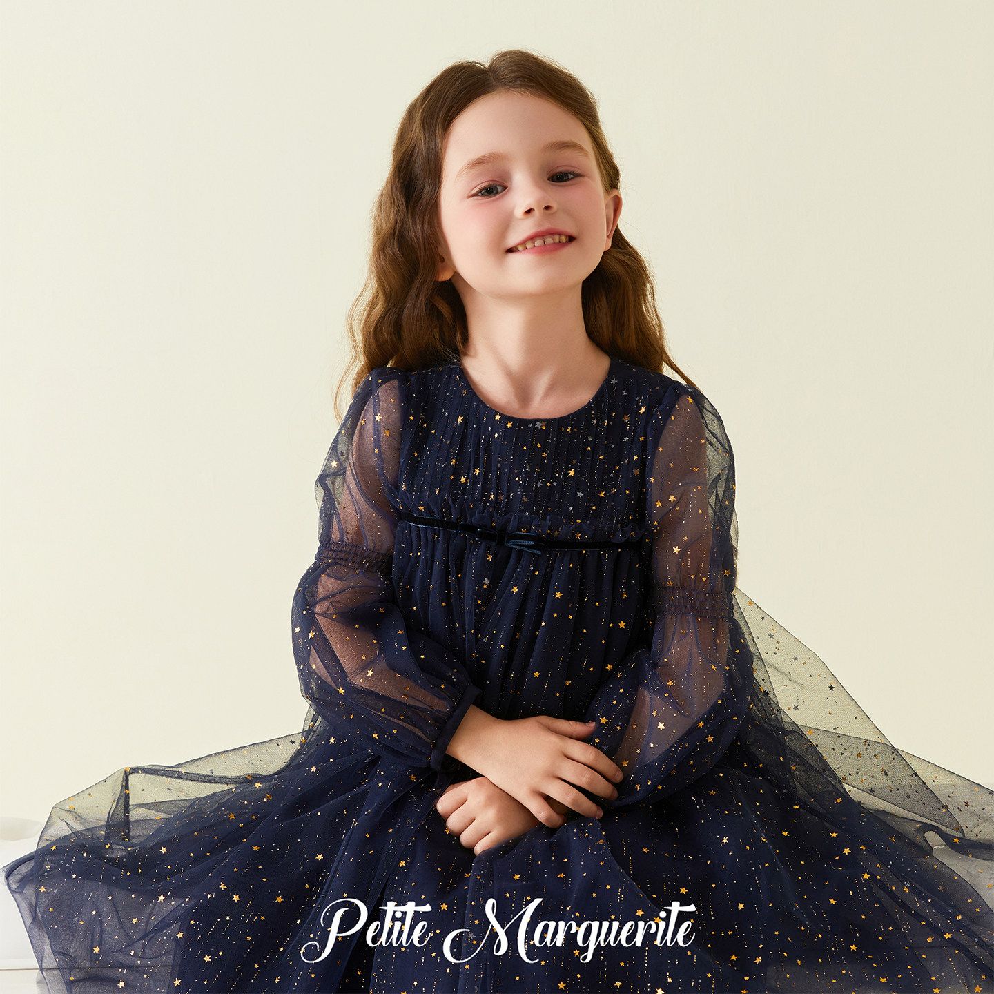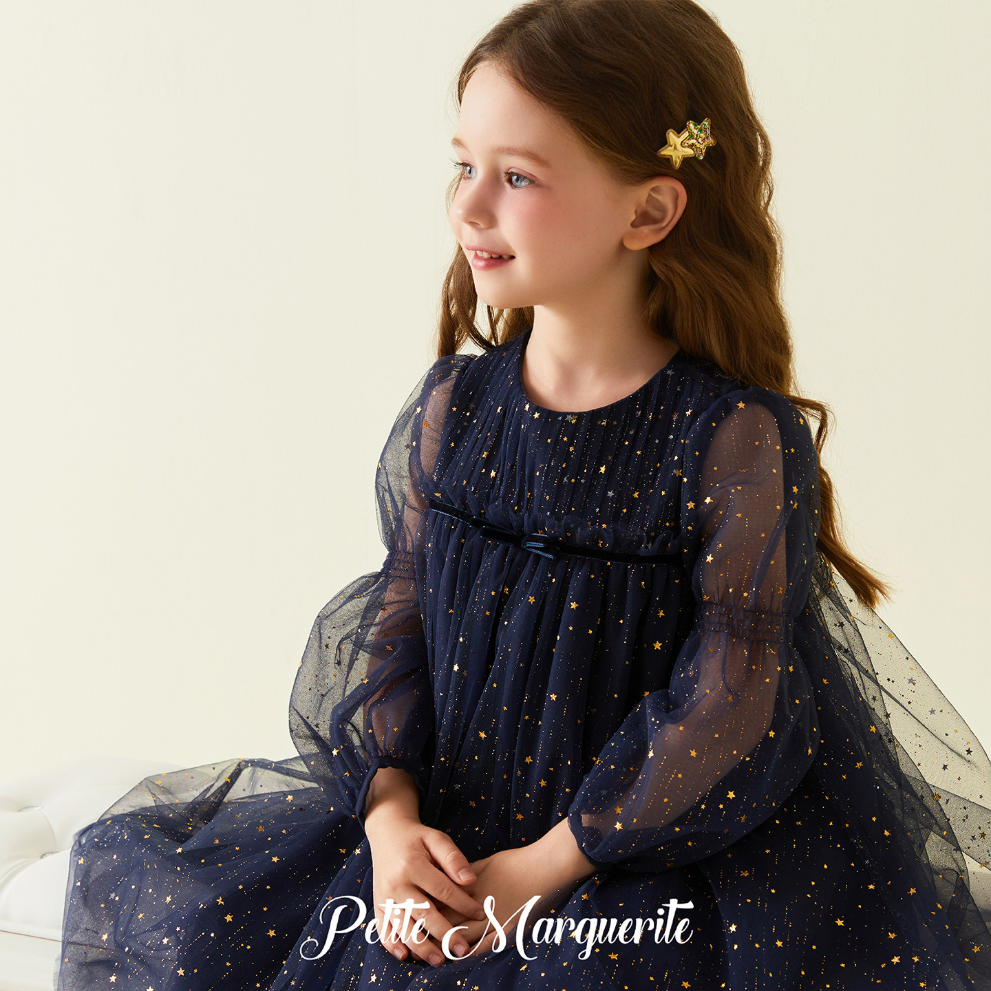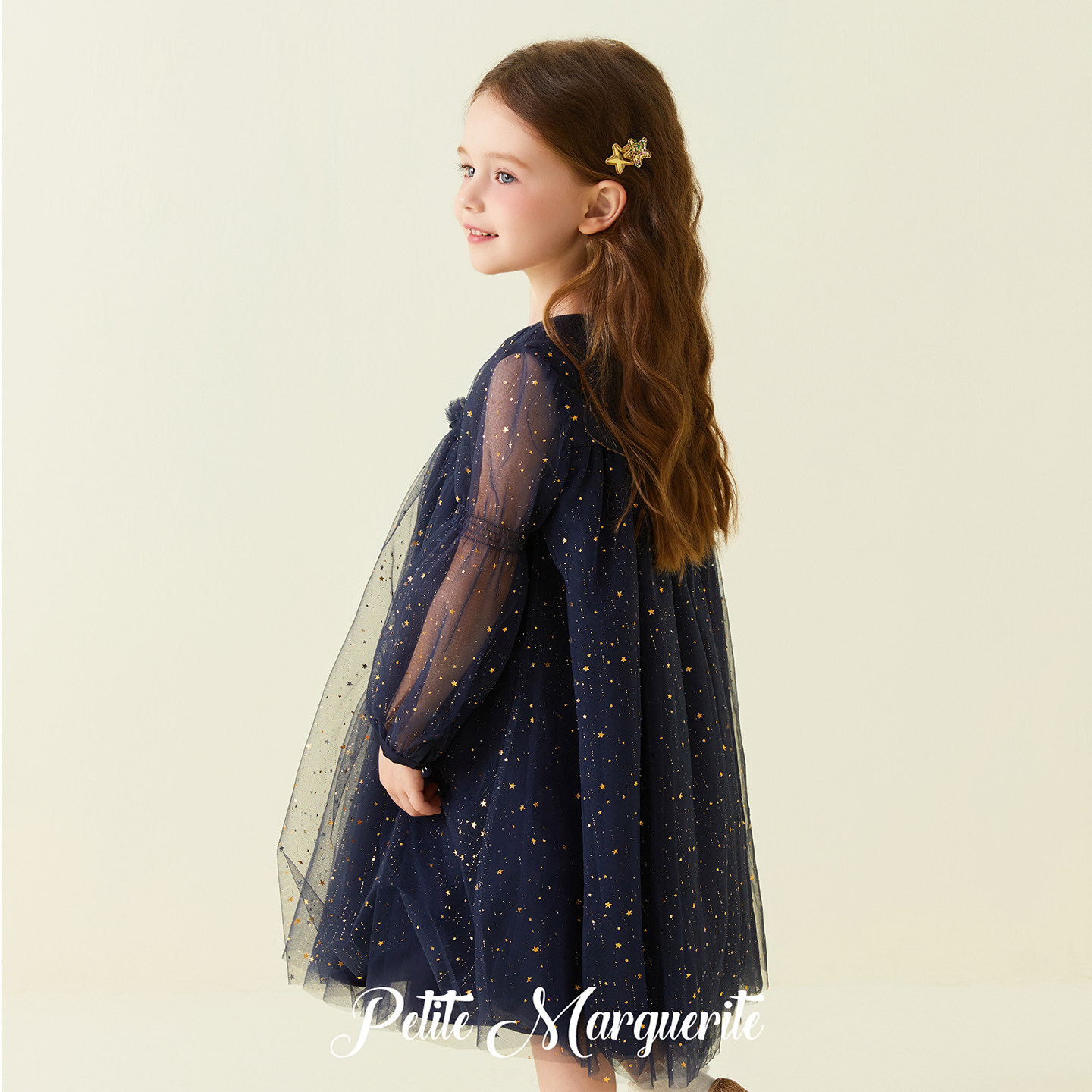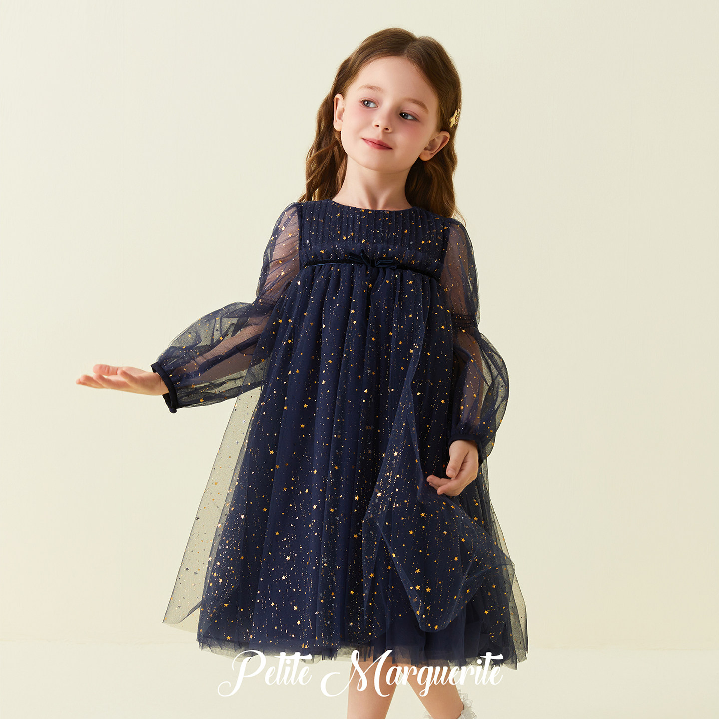 Petite Marguerite小雏菊童装· 小众礼服藏青色星光长袖连衣裙