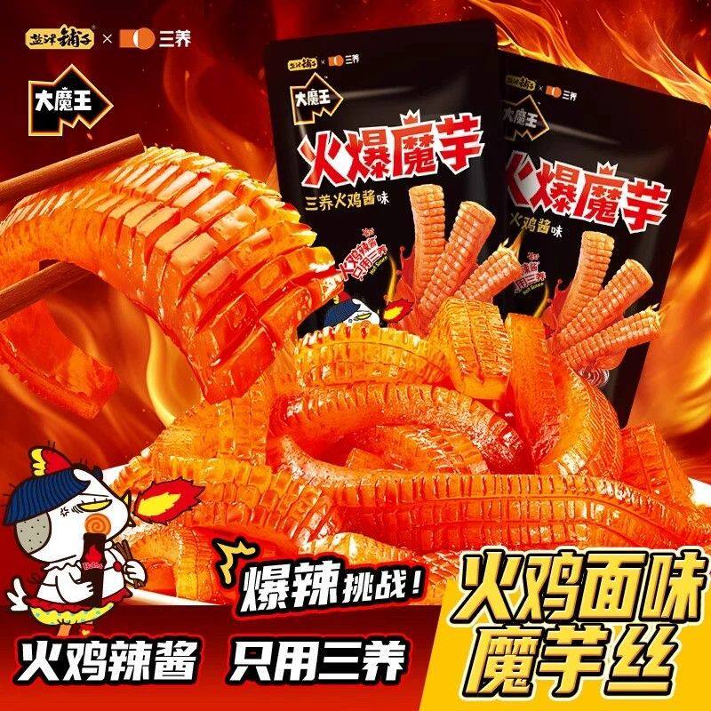 盐津铺子大魔王火爆魔芋15g三养火鸡面酱味爆辣魔芋爽休闲零食