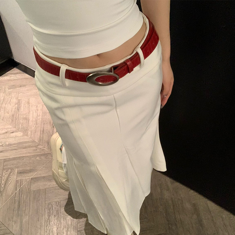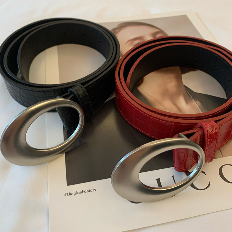 美式复古y2k金属扣腰带2025女新款红色鳄鱼纹皮革高级皮带配饰