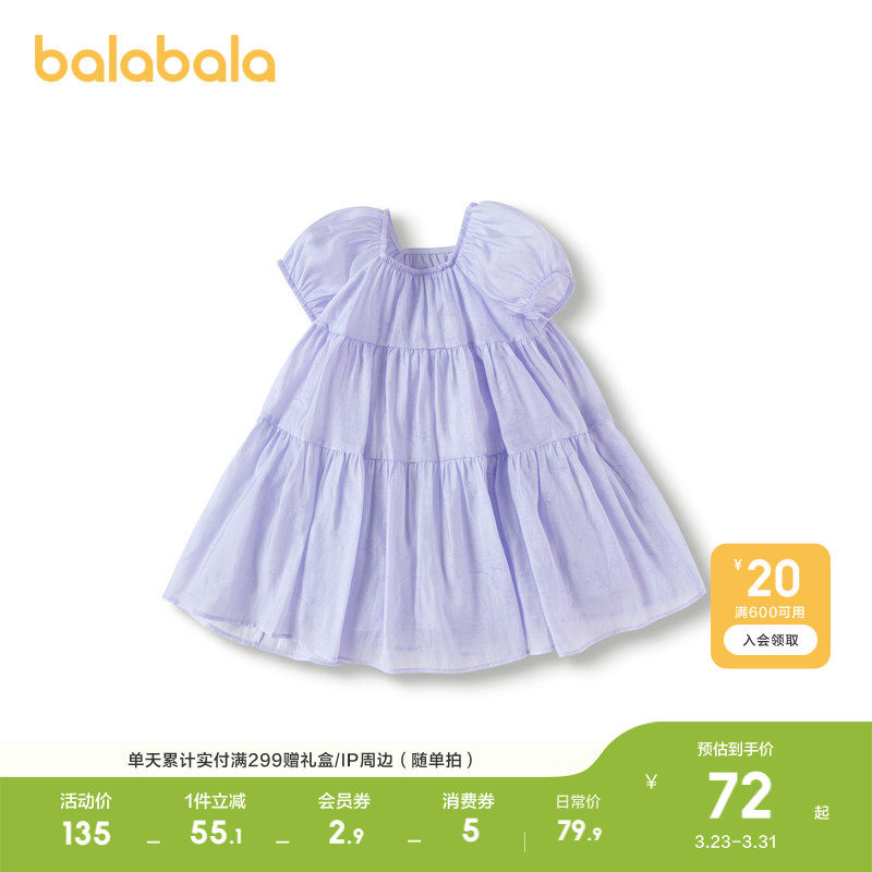 【balaOne】巴拉巴拉童装女童连衣裙2025新款春装网纱裙甜美洋气