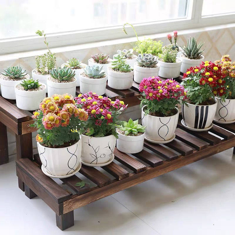 花架置物架实木碳化阶梯多层阳台落地防腐木室内户外绿萝花盆架子